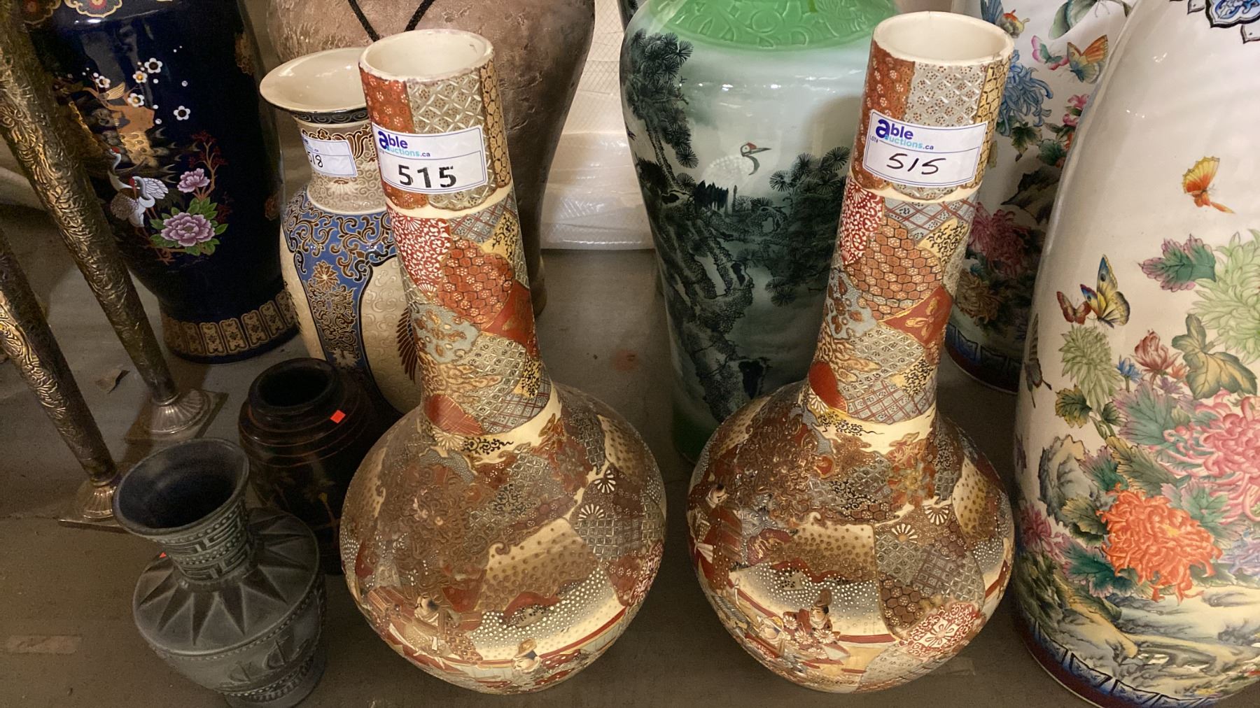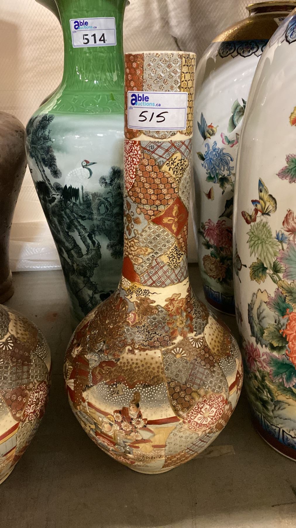 PAIR OF LARGE DECORATIVE ASIAN FLOOR VASES APPROX 32" TALL