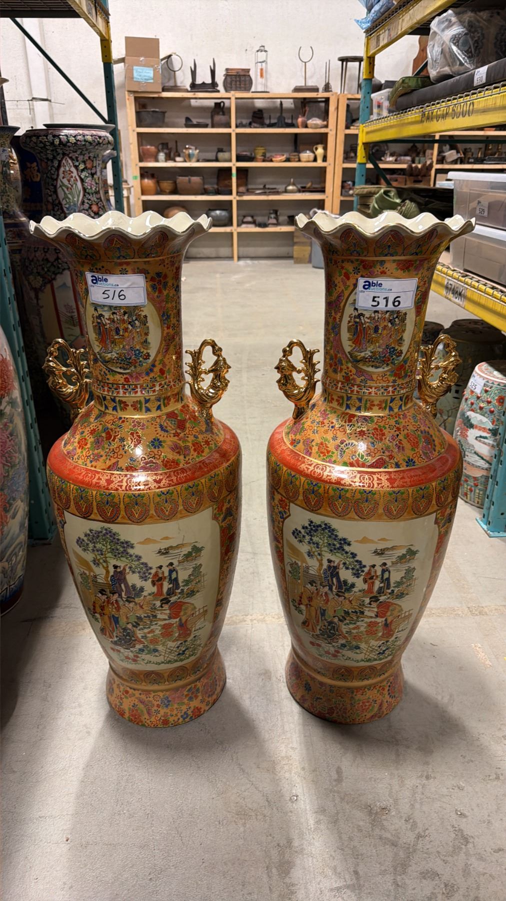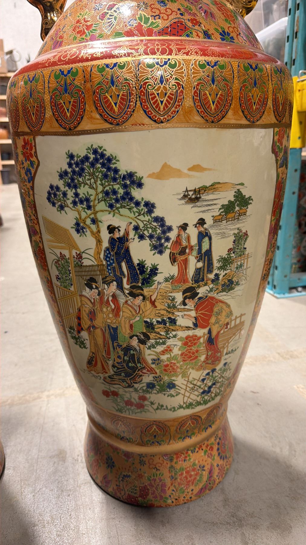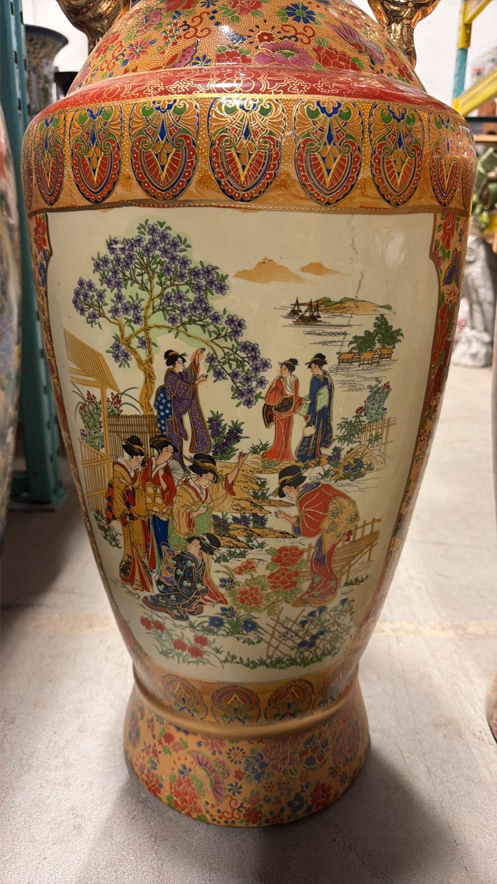 PAIR OF LARGE DECORATIVE ASIAN FLOOR VASES APPROX 42" TALL
