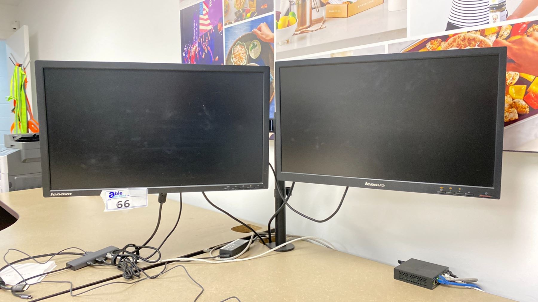 PAIR OF LENOVO MONITORS, 21", 24" WITH STAND