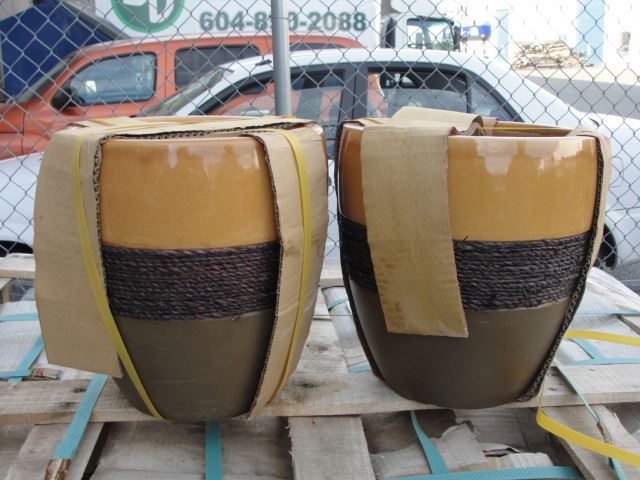 PAIR OF MEDIUM SIZE 2TONE WITH ROPE CORD ACCENT CERAMIC PLANTERS