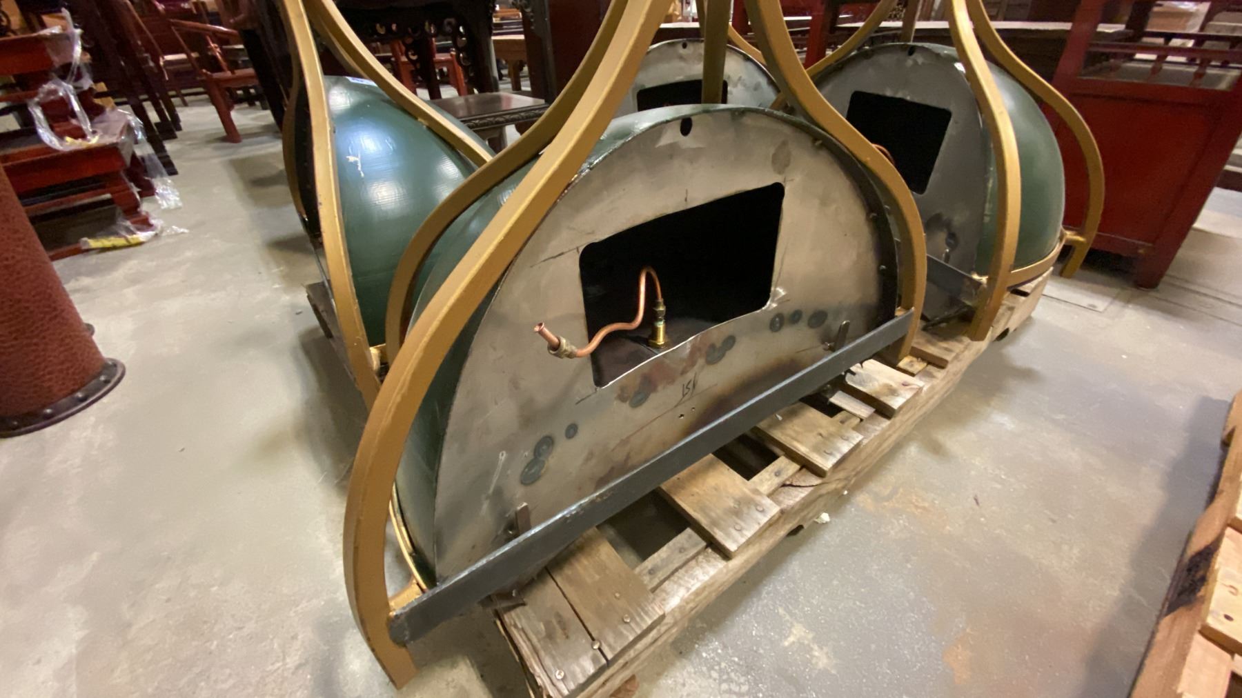 PAIR OF METAL GREEN AND GOLD WALL MOUNT HEATING SCONCES