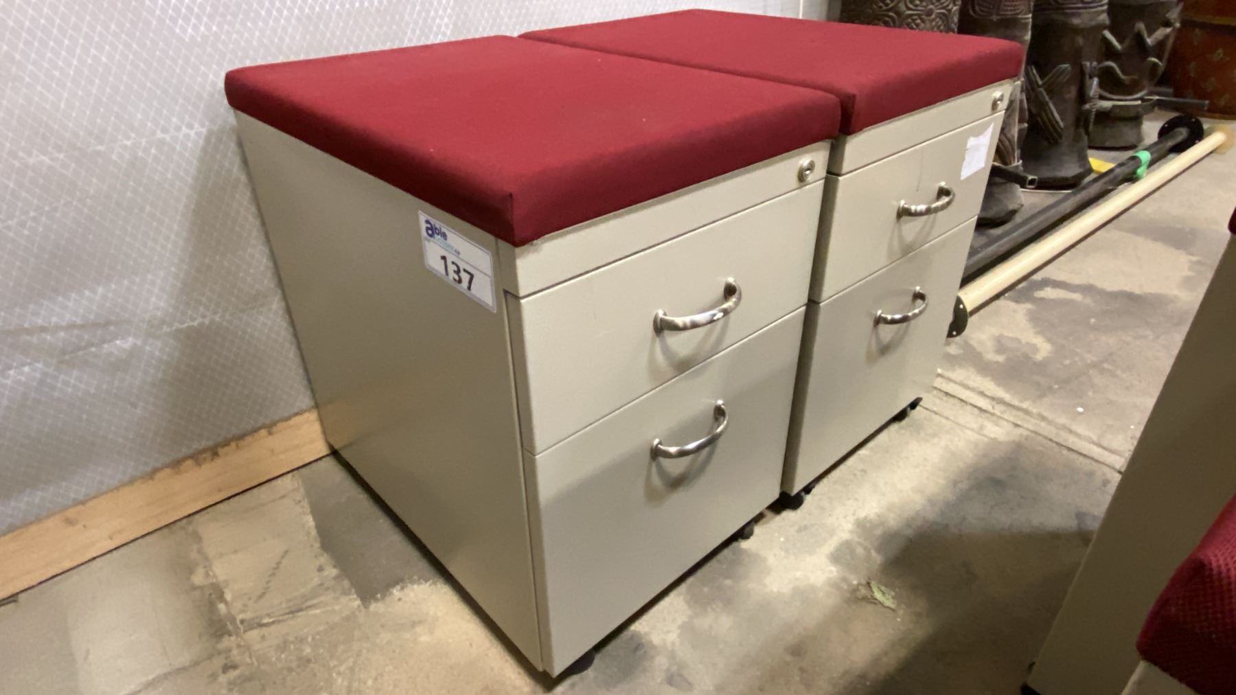 PAIR OF MOBILE PADDED TOP FILING CABINET STOOLS