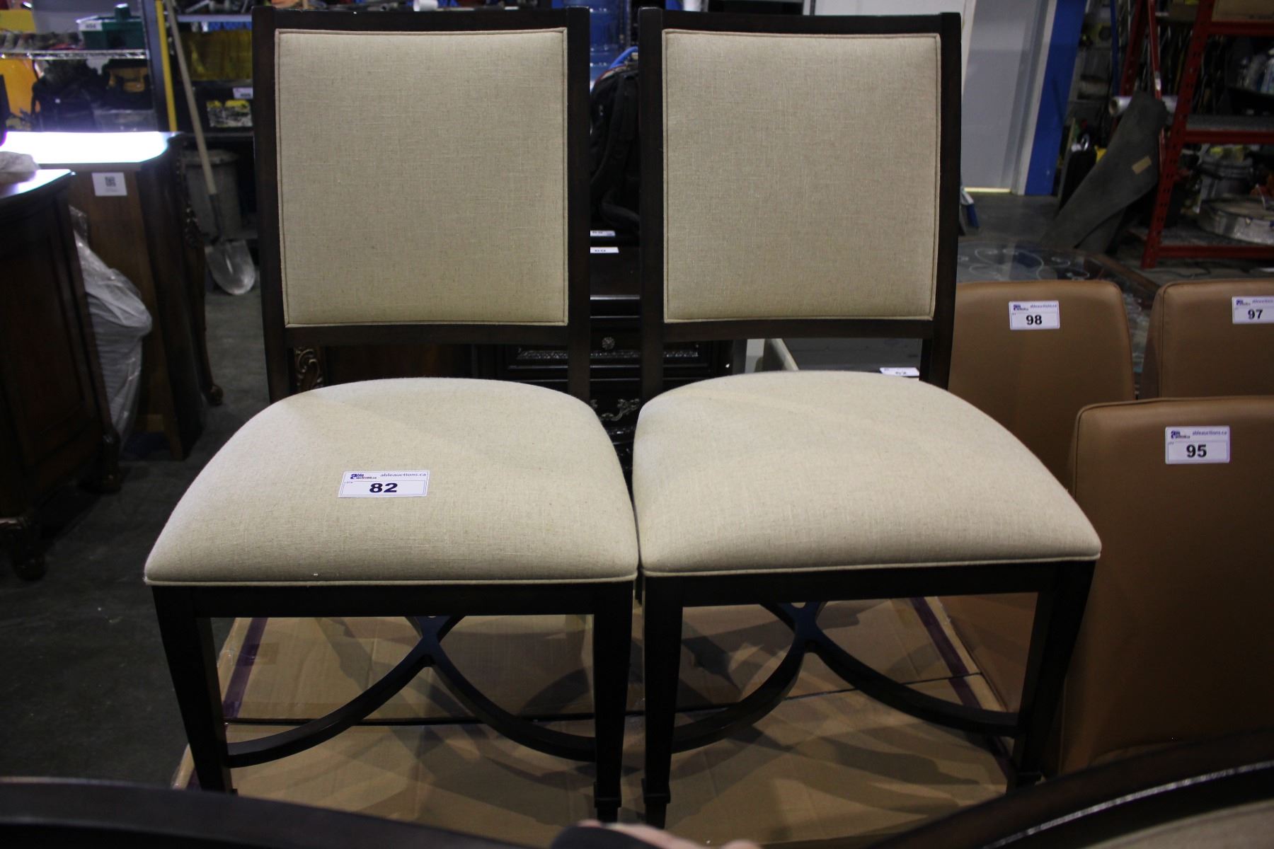 PAIR OF MODERN DARK WOOD WHITE PADDED DINING CHAIRS