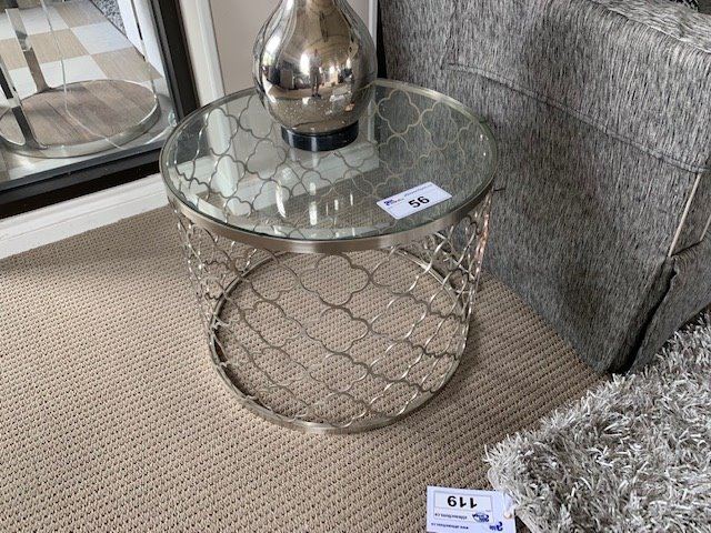 PAIR OF NICKEL & GLASS CIRCULAR END TABLES