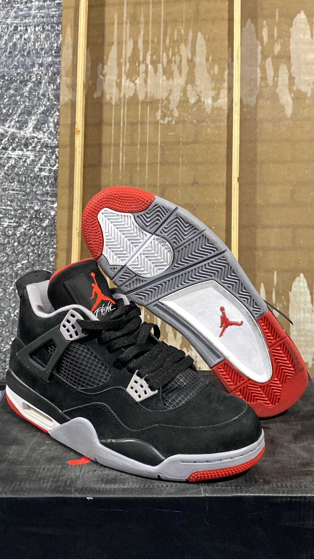 PAIR OF NIKE AIR JORDAN 4 RETRO "BRED" SIZE M10 *AUTHENTICITY UNKNOWN*