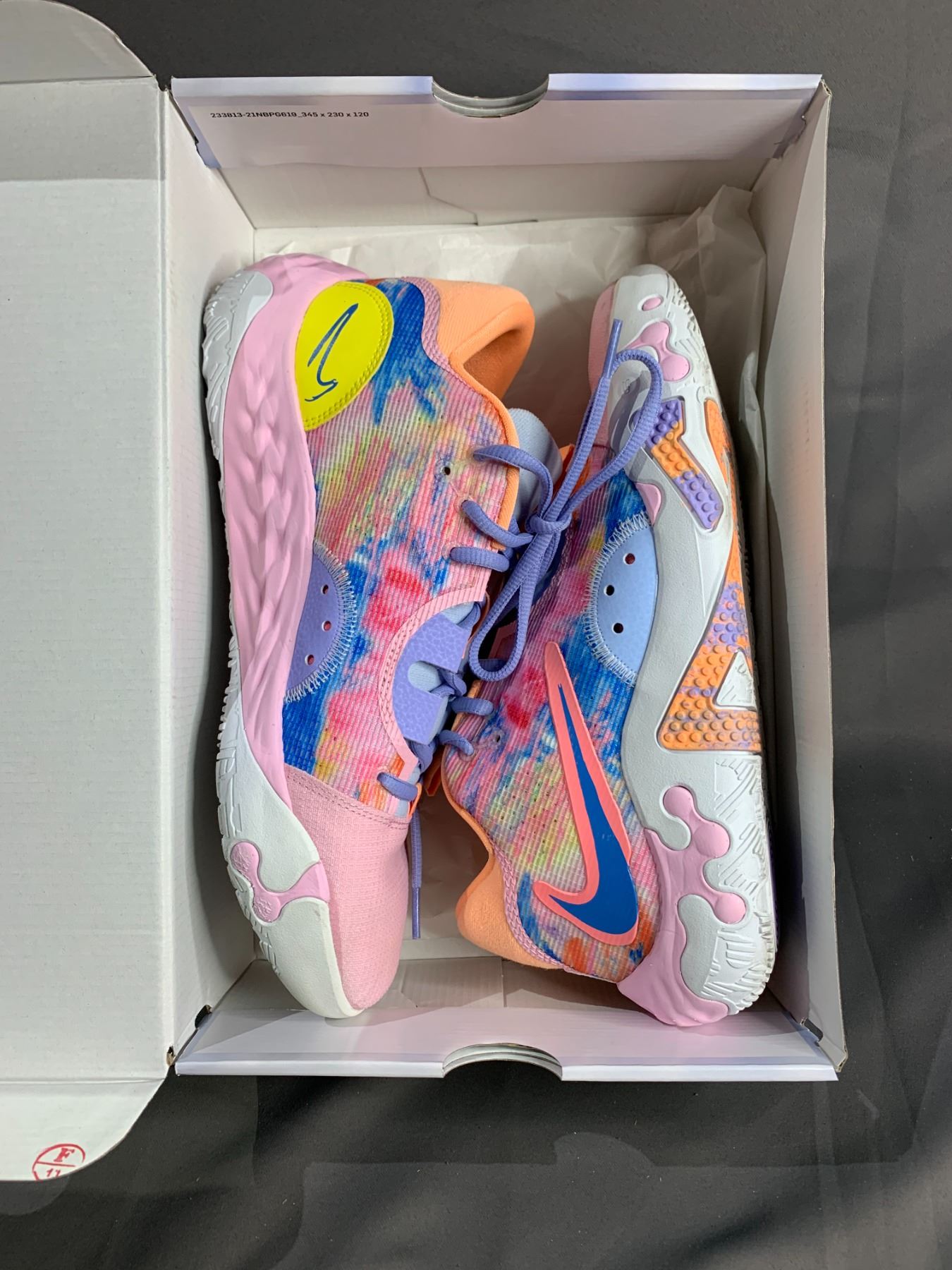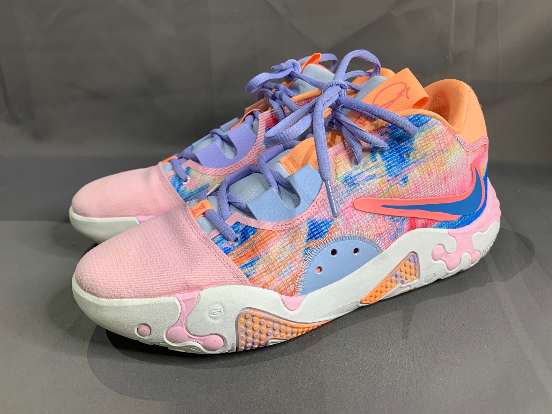 PAIR OF NIKE PG 6 PAUL GEORGE "PAINTED SWOOSH" SHOES SIZE 10 WITH BOX