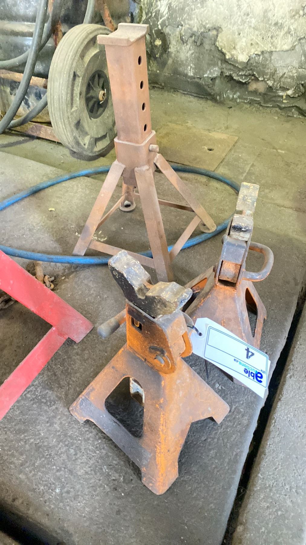 PAIR OF ORANGE 3 TON JACK STANDS & 1 BROWN JACK STAND