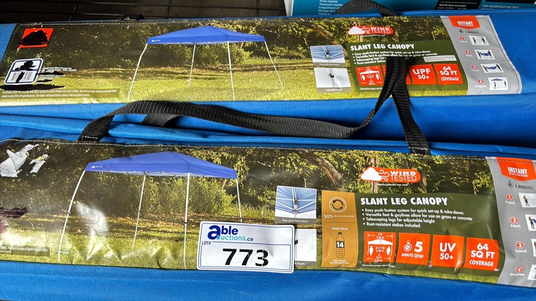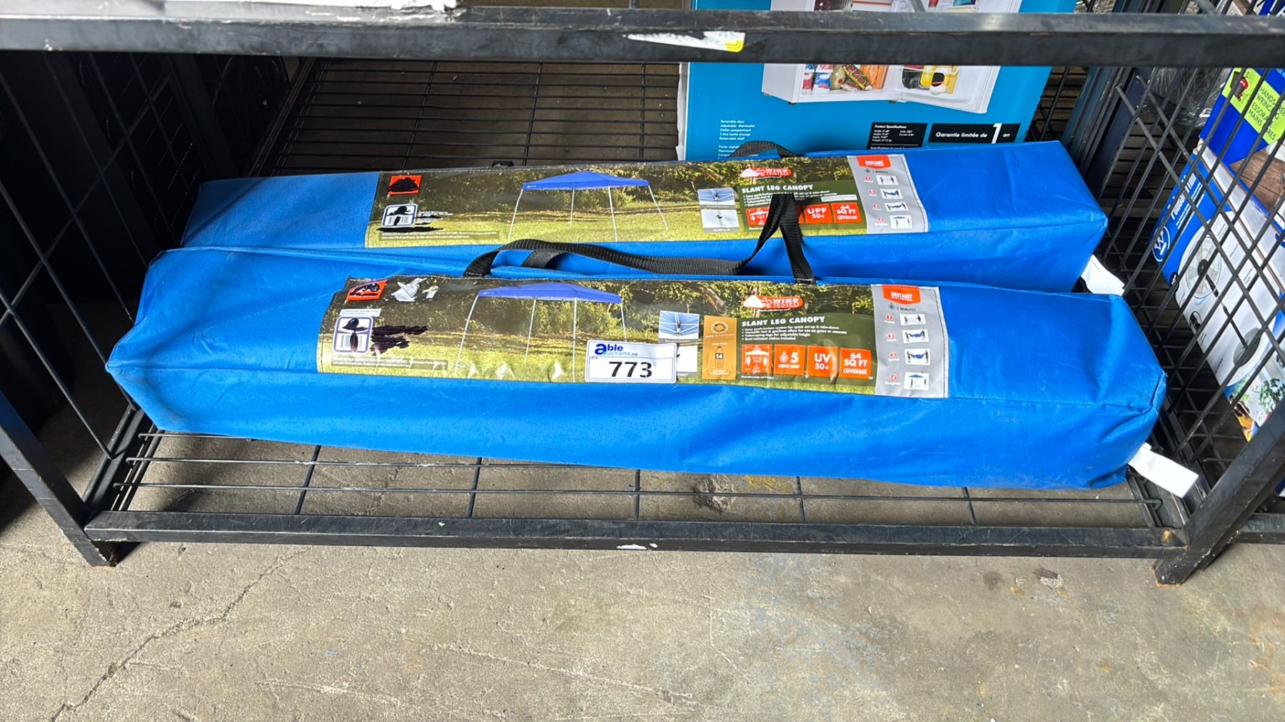 PAIR OF OZARK TRAIL SLANT LEG CANOPIES IN SOFT TRANSPORT BAGS