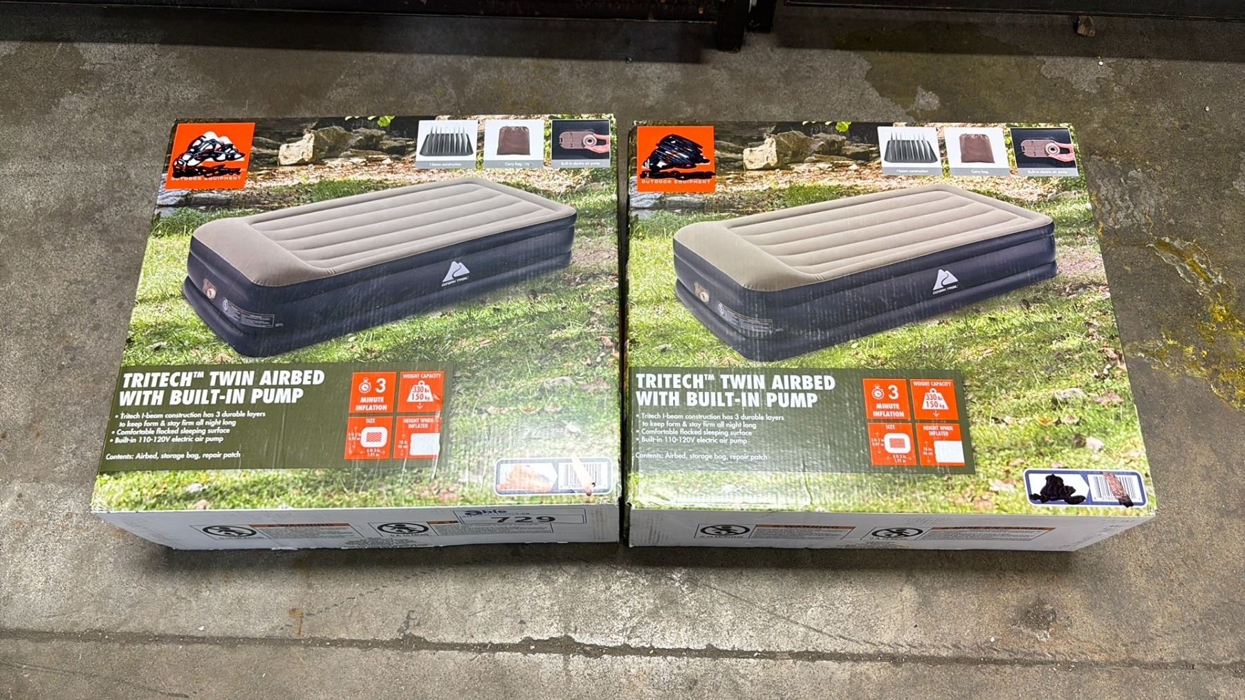 PAIR OF OZARK TRAILER TWIN AIR BEDS WITH BUILT IN PUMPS