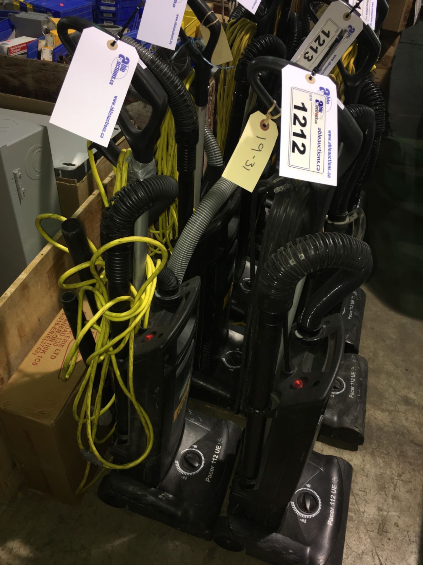 PAIR OF PACER 112 UE COMMERCIAL UPRIGHT VACUUM WITH ATTACHMENTS