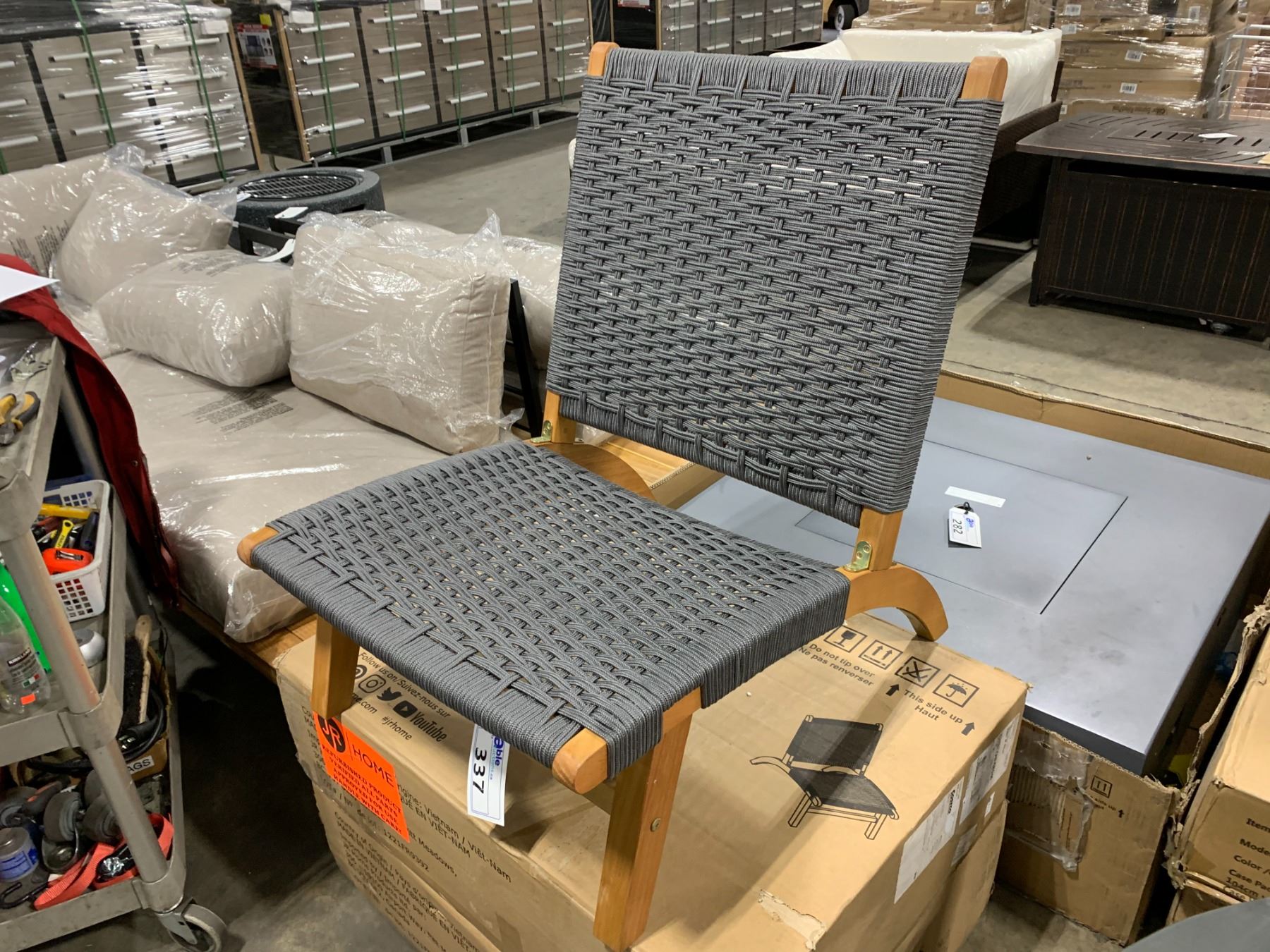 PAIR OF PATIOFLARE WOOD GRAIN & GREY COSTA RICA WOVEN OUTDOOR PATIO CHAIR **IN BOX**