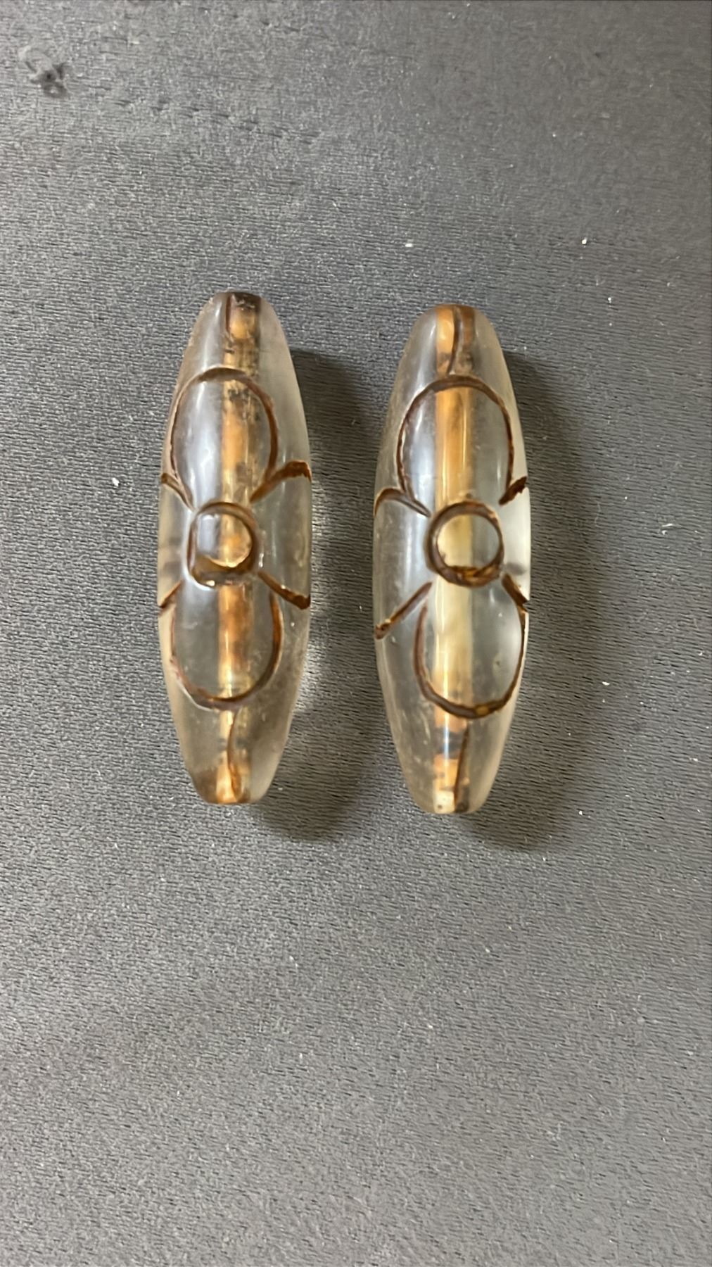 PAIR OF "POND FLOWER" DZI BEADS