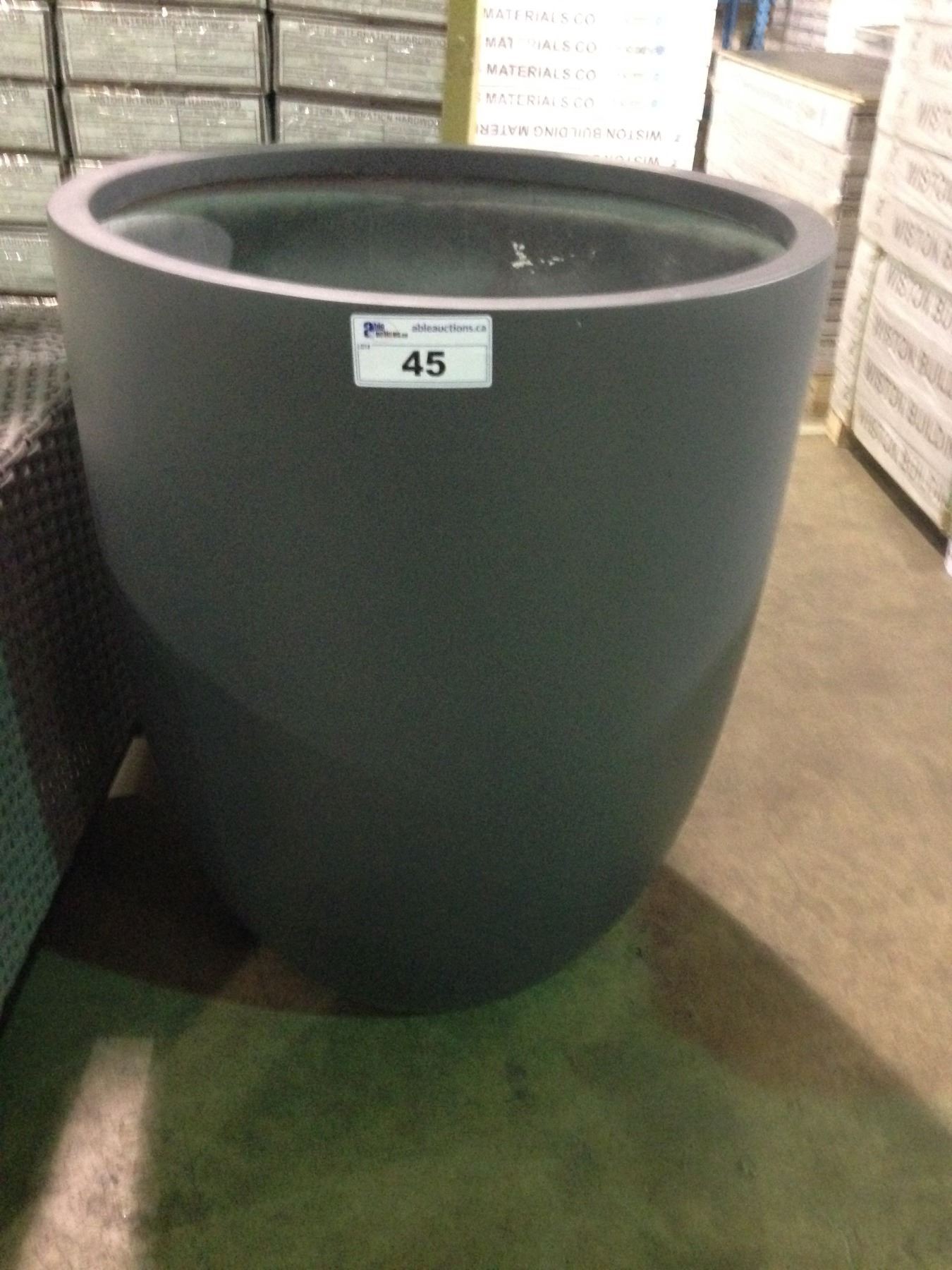 PAIR OF POTS PERFECT 29  ROUND X 36  TALL MATTE GREY RESIN OUTDOOR FLOWER POTS
