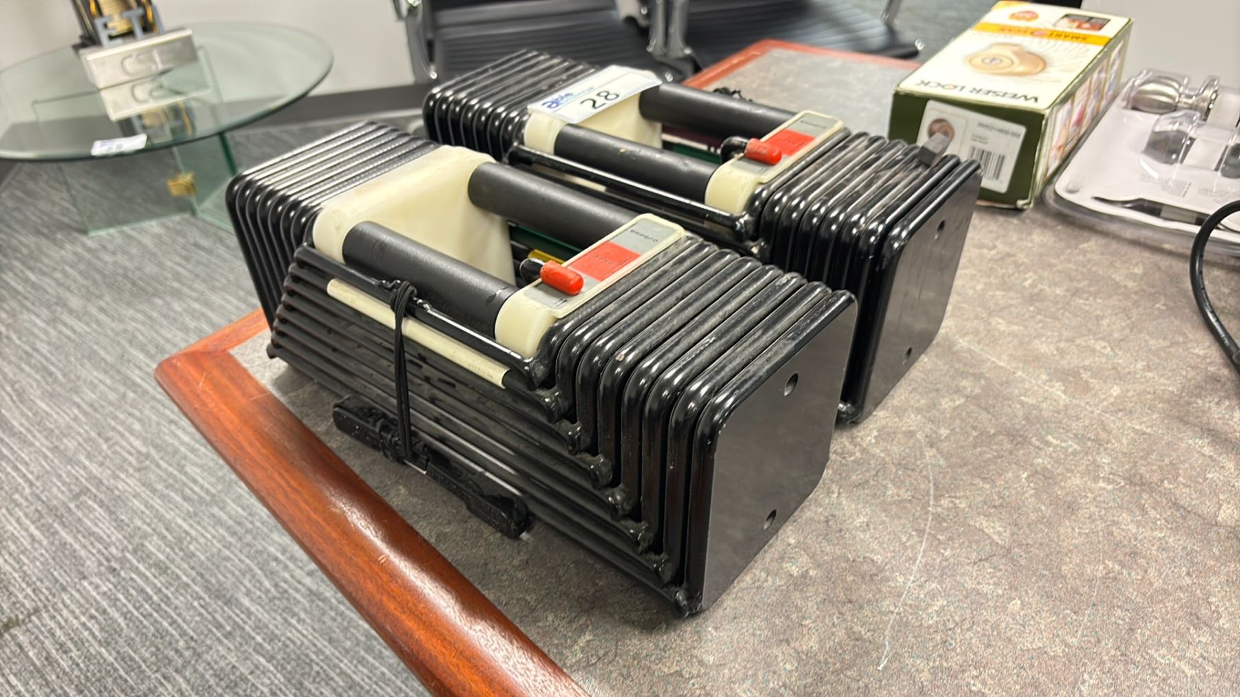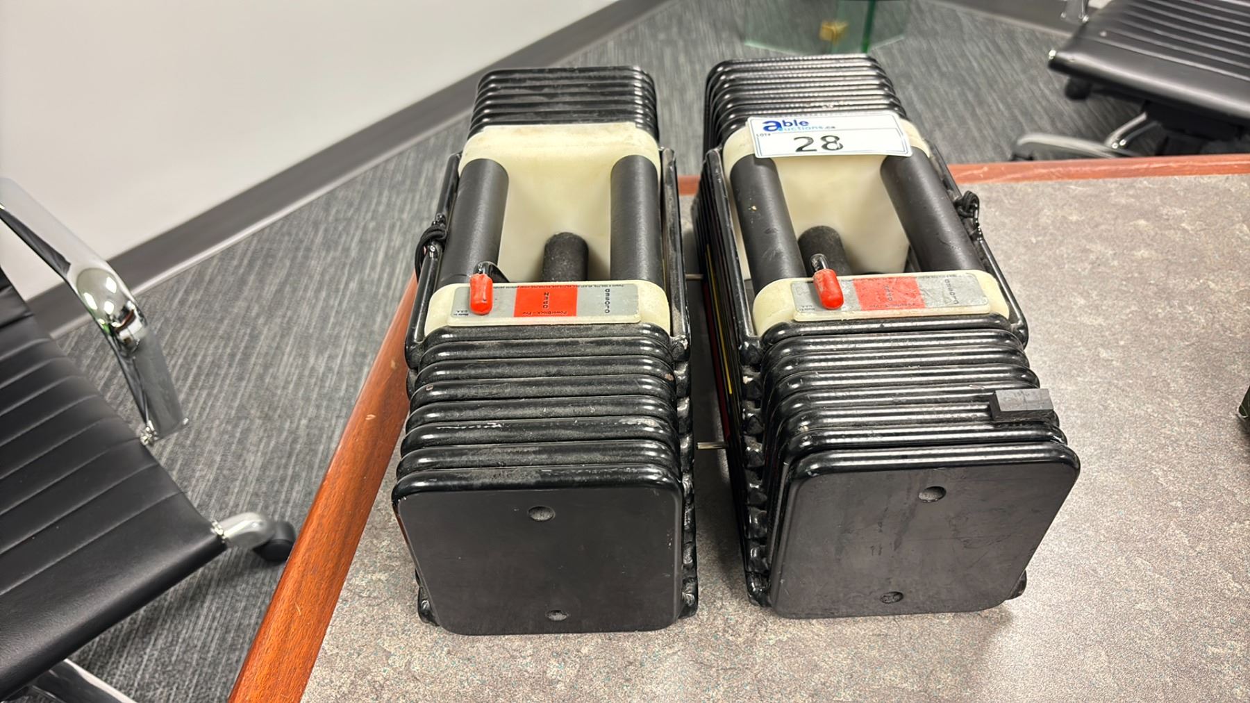 PAIR OF POWERBLOCK PRO 5 - 90 LBS ADJUSTABLE DUMBBELL SET