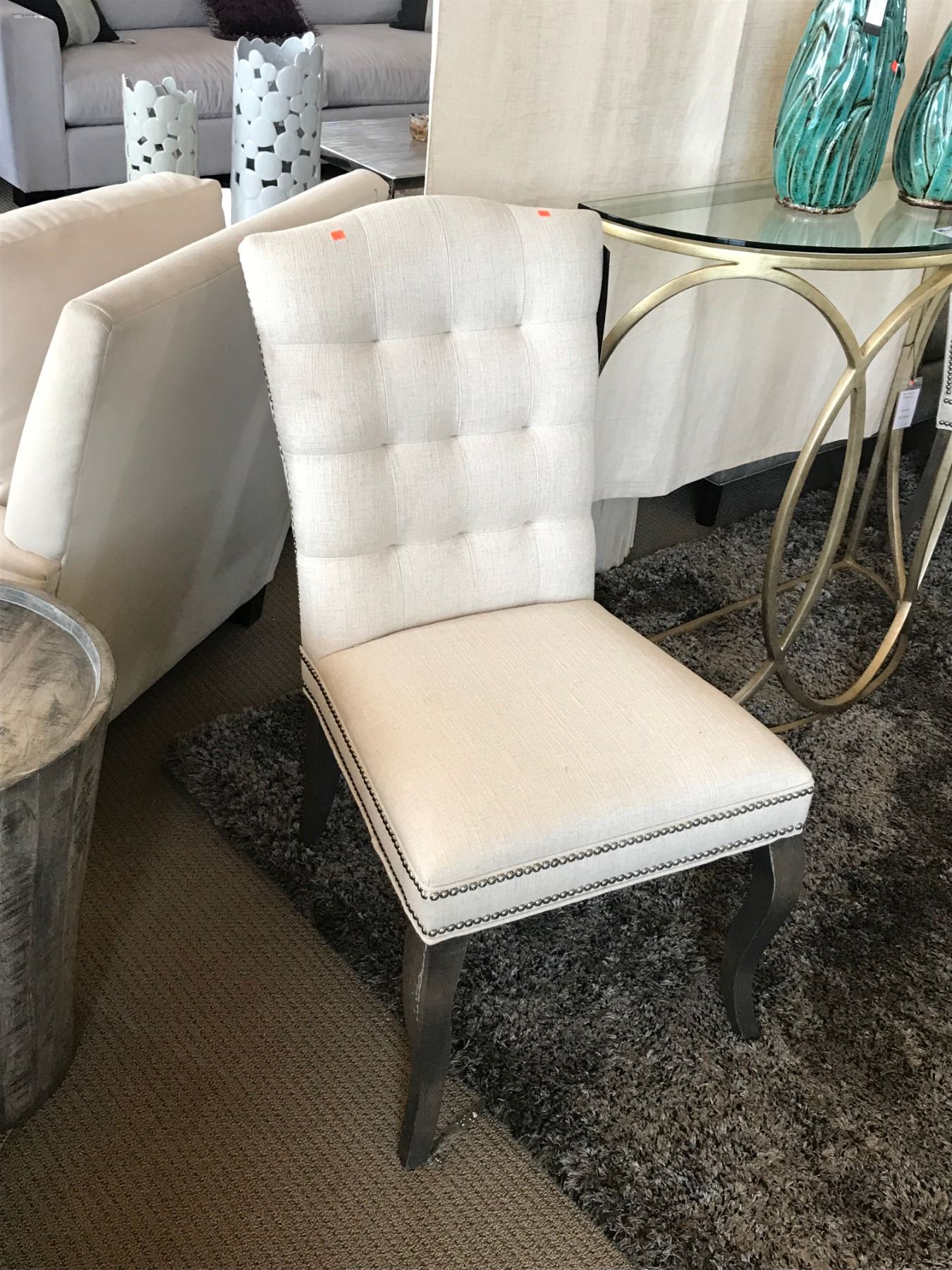 PAIR OF PRESIDENT CREAM LINEN FABRIC STUDDED DINING CHAIRS