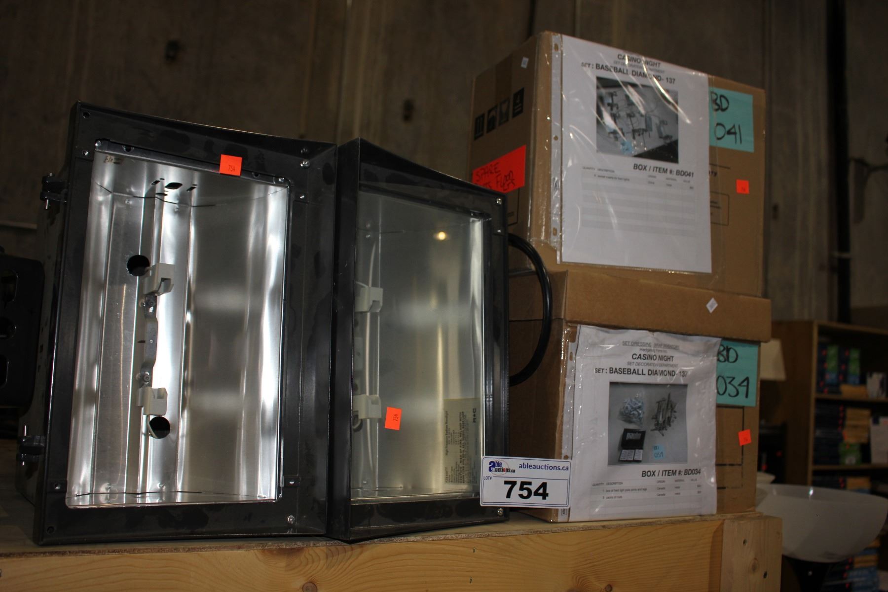 PAIR OF RC HIGH PRESSURE SODIUM FLOODLIGHTS AND 2 BOXES OF FLOODLIGHT HARDWARE