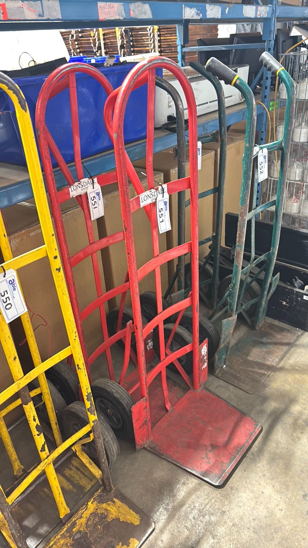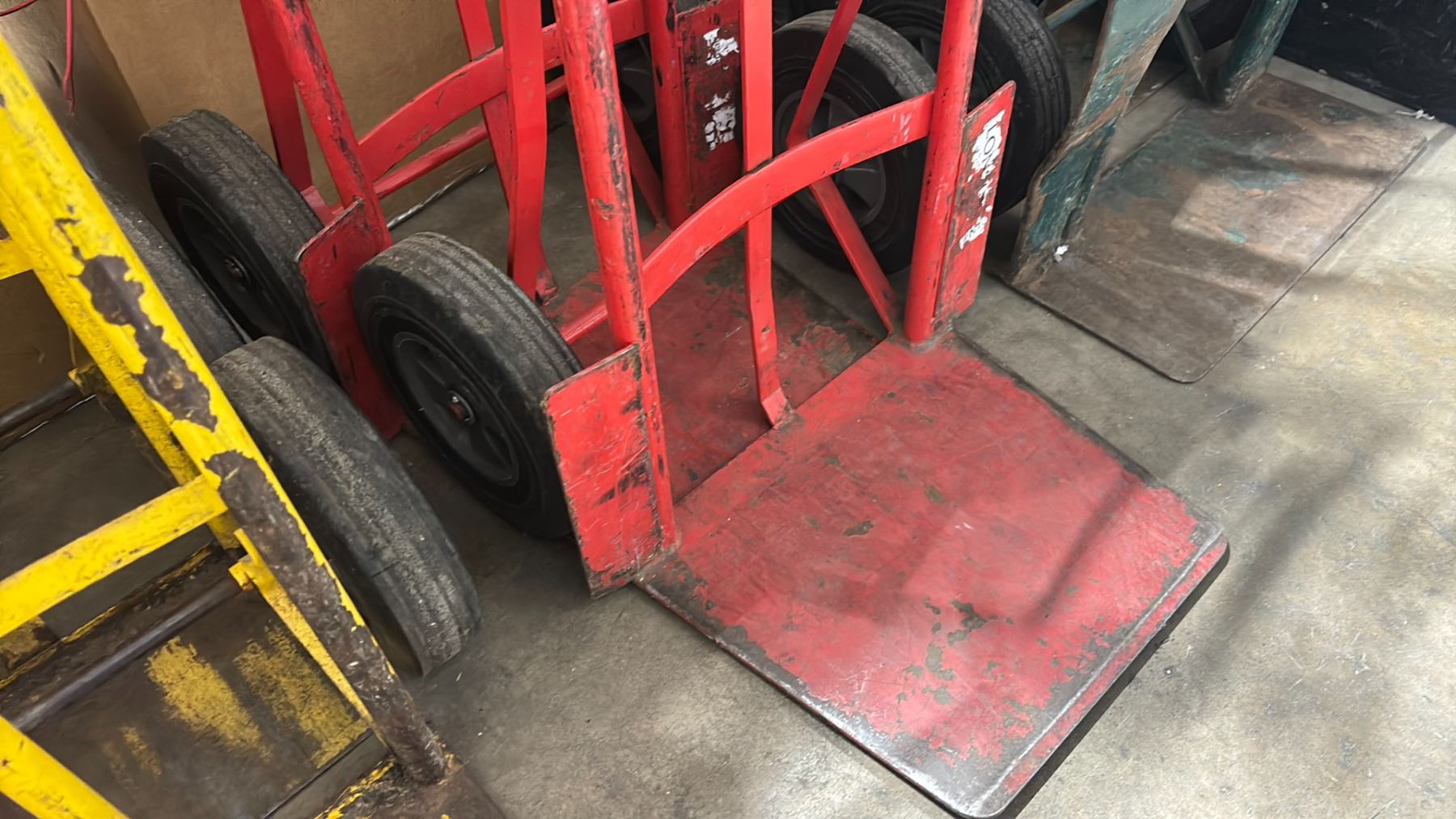PAIR OF RED SOLID TIRE 2 WHEEL HAND TRUCKS