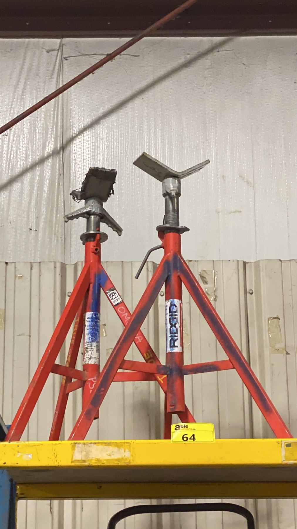 PAIR OF RIDGID VJ-99 V-HEAD ADJUSTABLE INDUSTRIAL PIPE STANDS