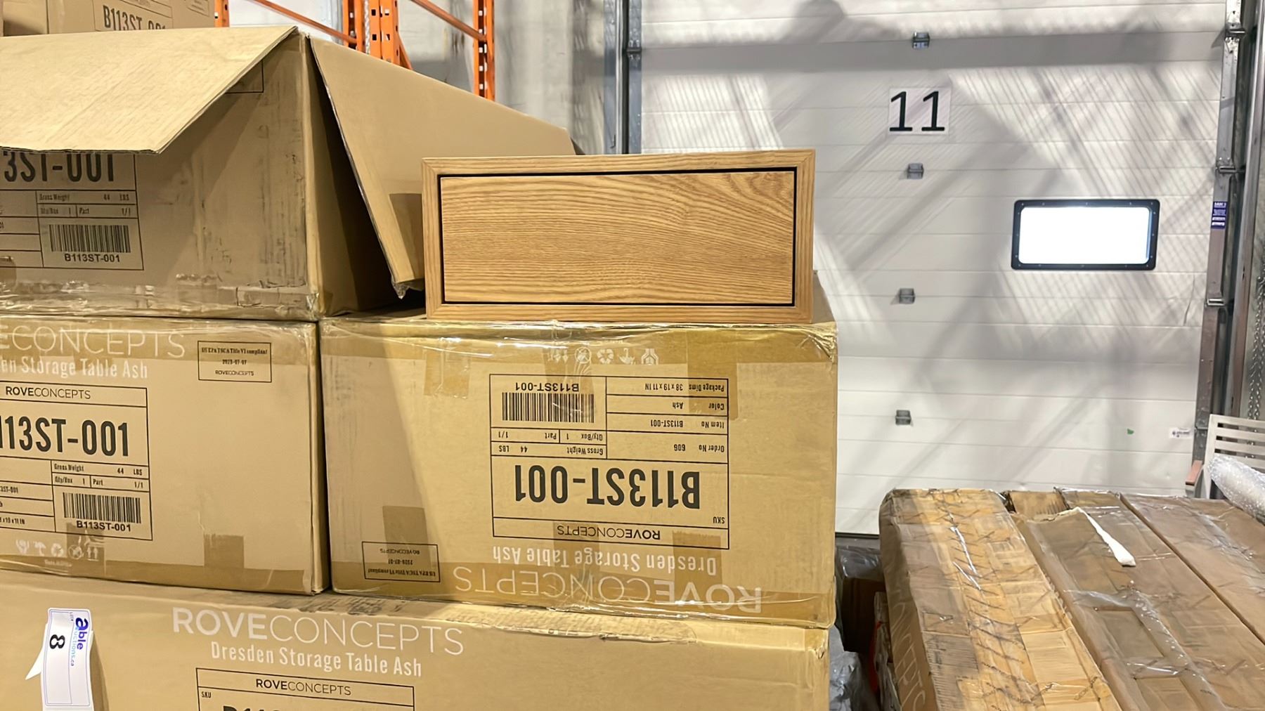 PAIR OF ROVE CONCEPTS DESIGNER DRESDEN ASH WOODEN STORAGE TABLE *IN BOX*