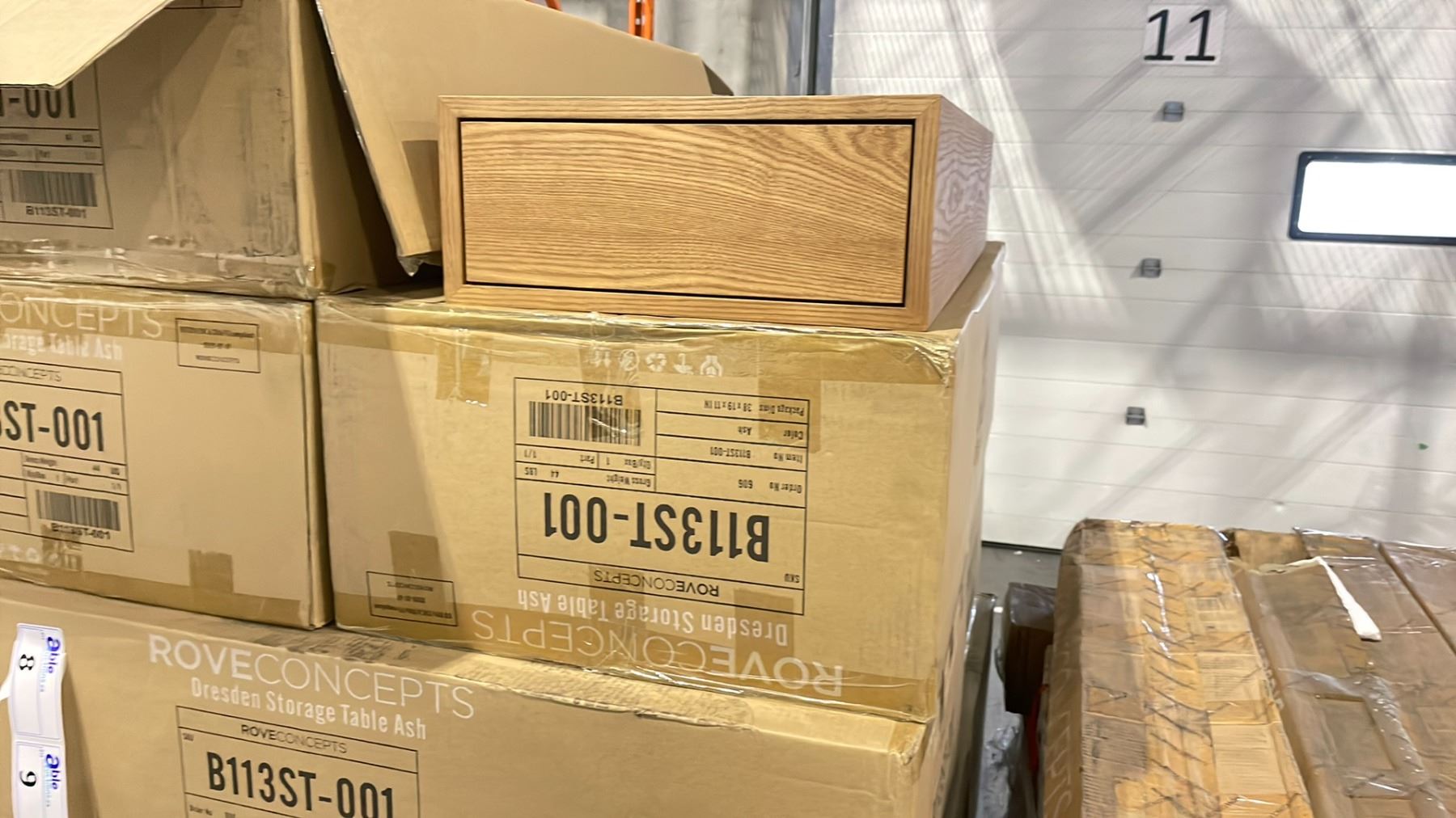PAIR OF ROVE CONCEPTS DESIGNER DRESDEN ASH WOODEN STORAGE TABLE *IN BOX*
