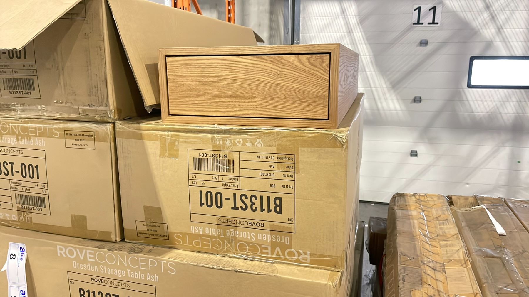 PAIR OF ROVE CONCEPTS DESIGNER DRESDEN ASH WOODEN STORAGE TABLE *IN BOX*