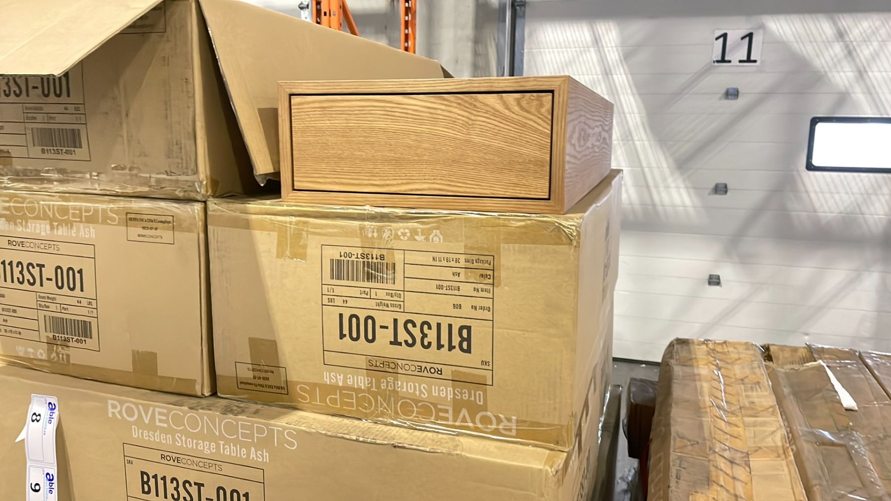 PAIR OF ROVE CONCEPTS DESIGNER DRESDEN ASH WOODEN STORAGE TABLE *IN BOX*