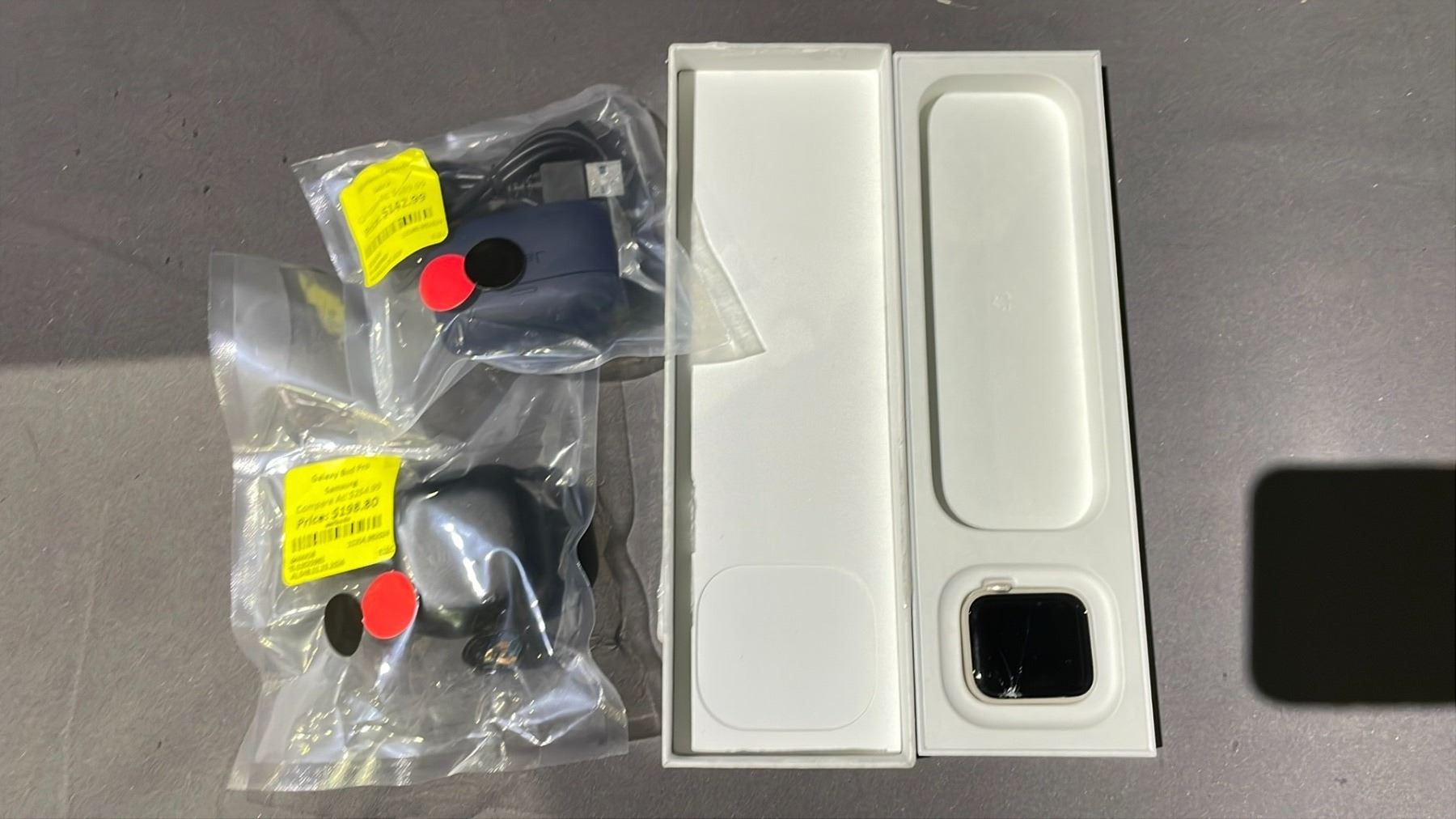 PAIR OF SAMSUNG EARBUDS, PAIR OF JABRA EARBUDS & APPLE WATCH (UNKNOWN WORKING CONDITION, MAY BE MISSING PIECES)