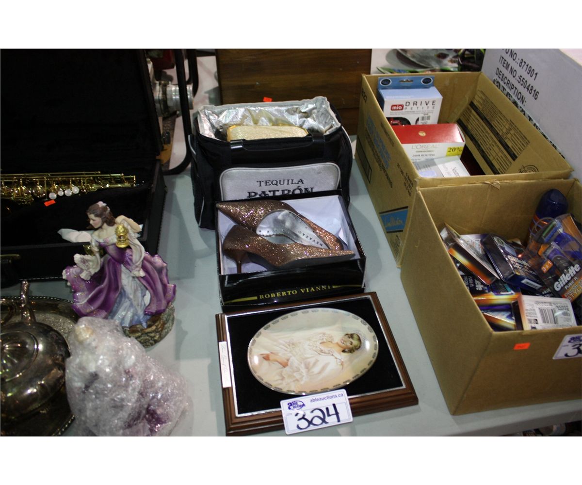 PAIR OF SHOES, COSTUME JEWELRY AND PLATE