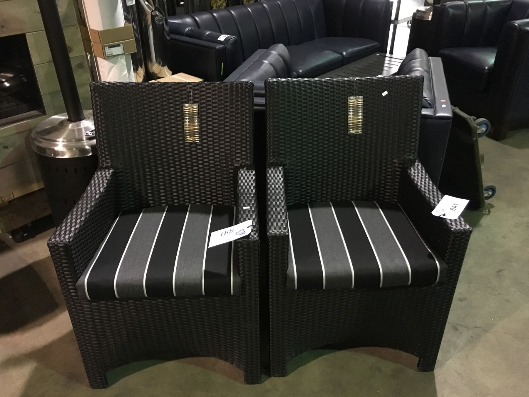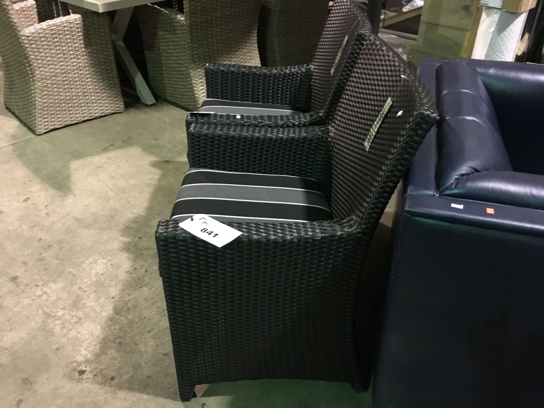 PAIR OF SOL WEAVE DARK PLASTIC RATTAN OUTDOOR PATIO ARM CHAIRS