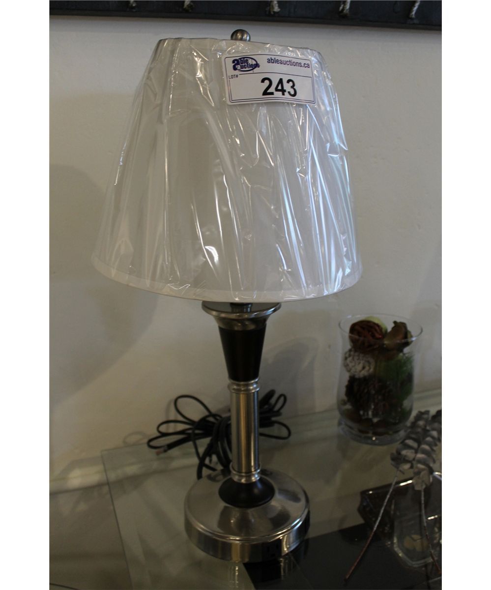 PAIR OF STAINLESS STEEL TABLE LAMPS WITH MEDIA BAY STYLE 6006-0984