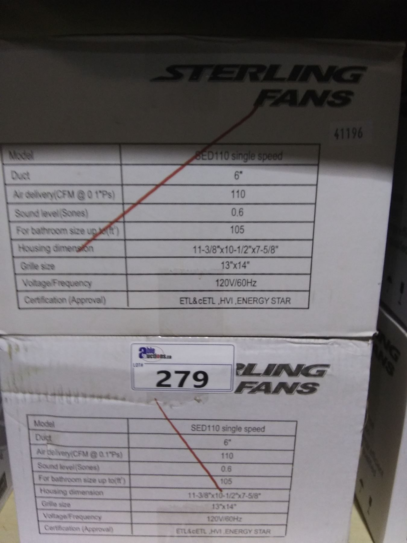 PAIR OF STERLING FANS SE110 ULTRA SILENT HIGH PERFORMANCE HVAC CEILING EXHAUST FANS