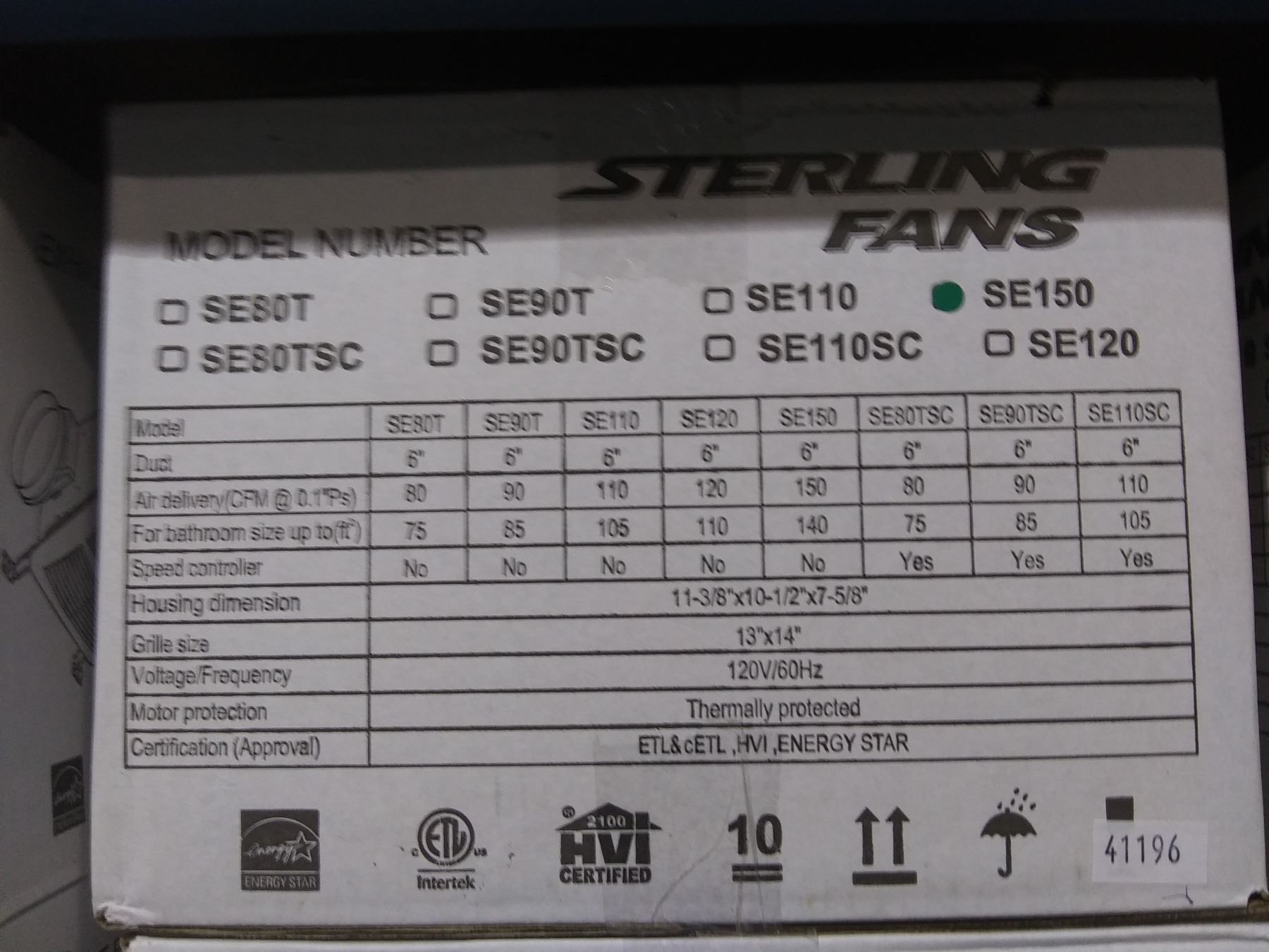 PAIR OF STERLING FANS SE150 ULTRA SILENT HIGH PERFORMANCE HVAC CEILING EXHAUST FANS