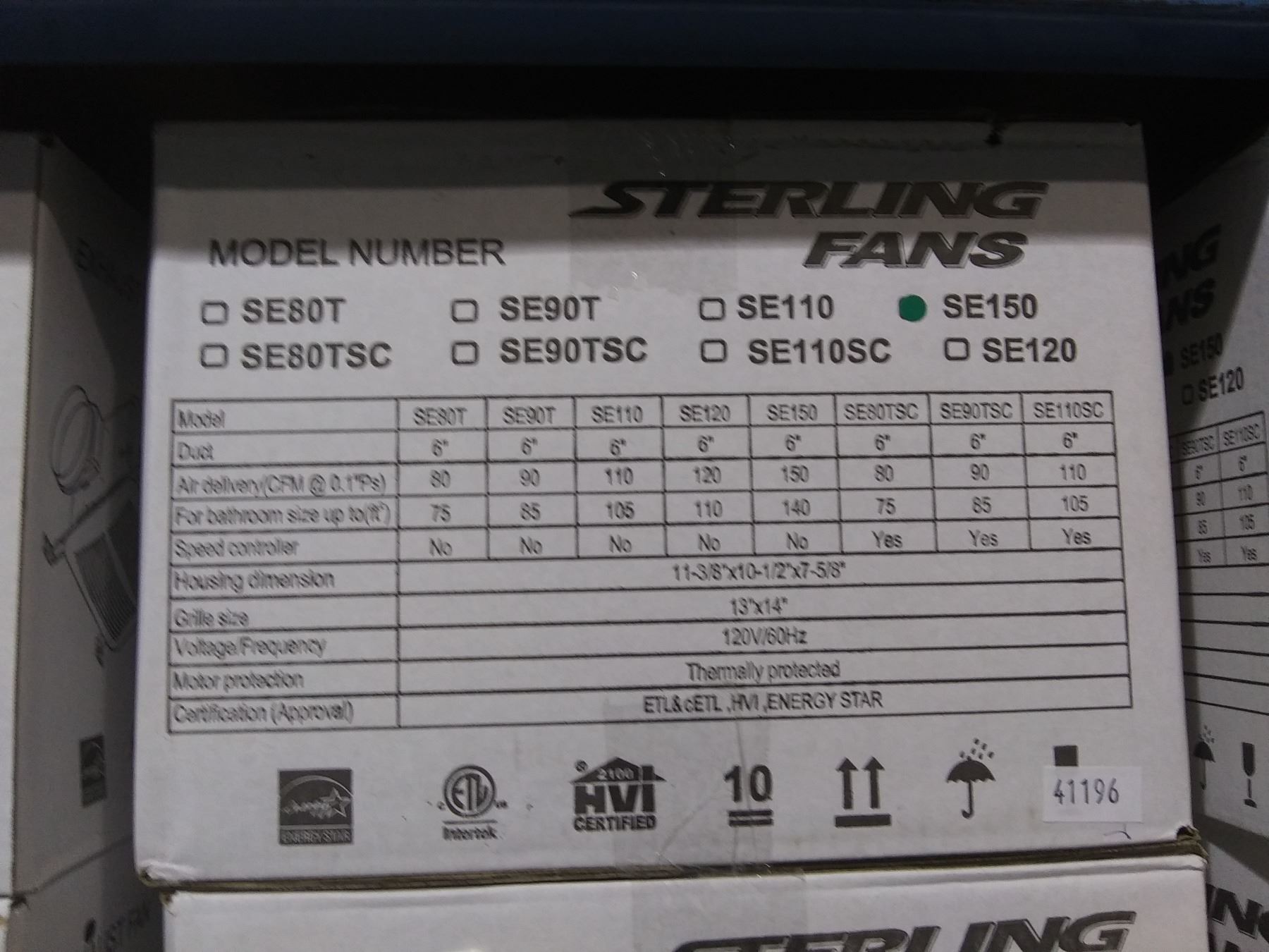 PAIR OF STERLING FANS SE150 ULTRA SILENT HIGH PERFORMANCE HVAC CEILING EXHAUST FANS
