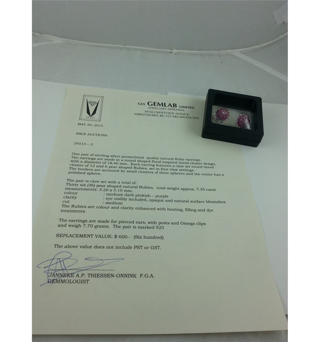 PAIR OF STERLING SILVER PROMOTIONAL QUALITY NATURAL RUBY EARRINGS WITH 36 RUBIES, APPROX 7.35CARATS REPLACEMENT VALUE $600