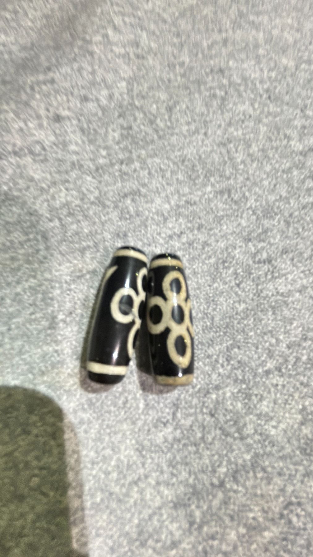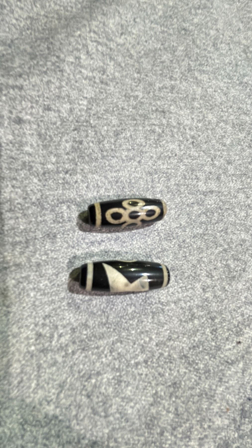 PAIR OF TIBETAN BLACK AND WHITE DZI BEADS APPROX 1"