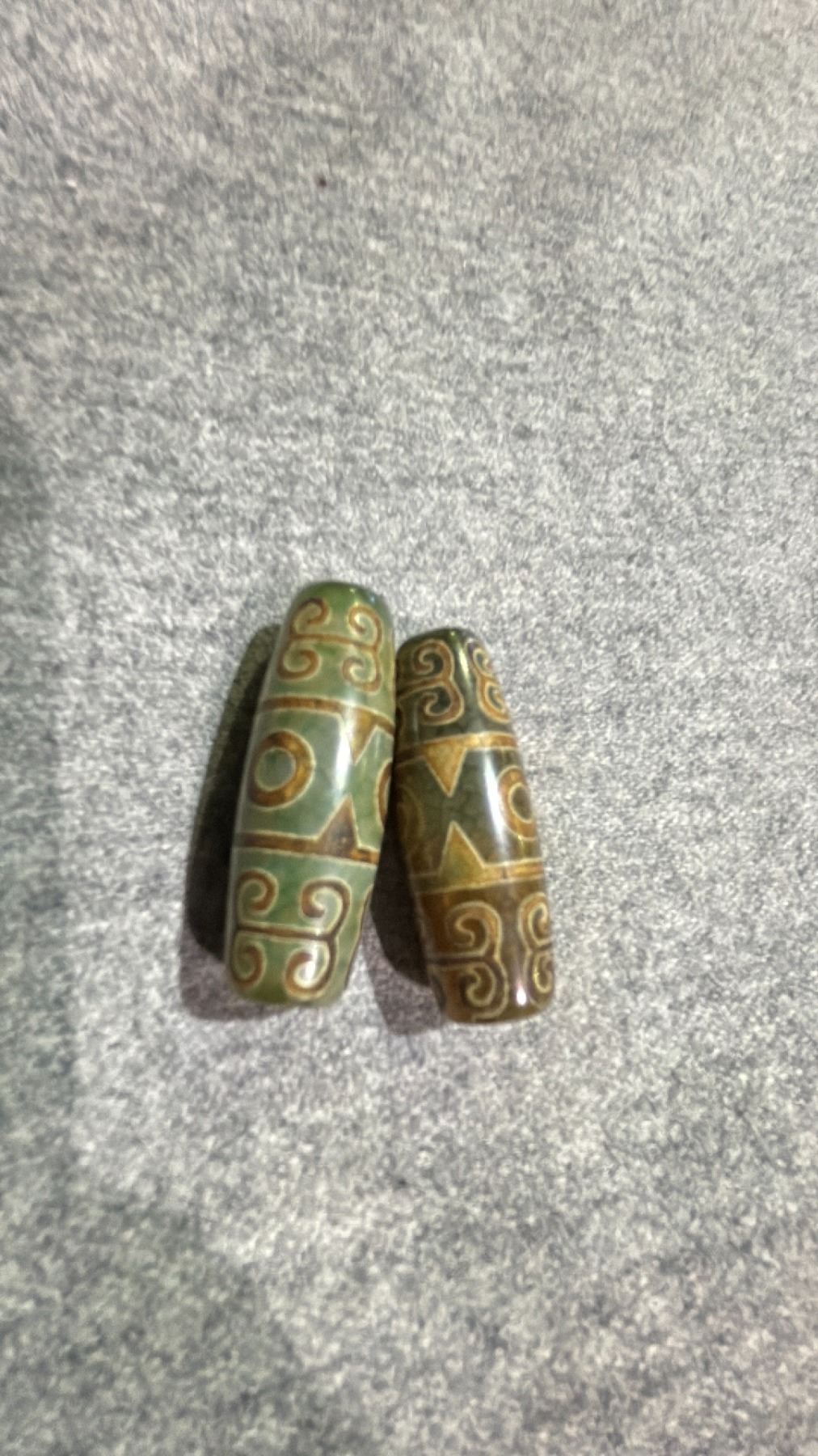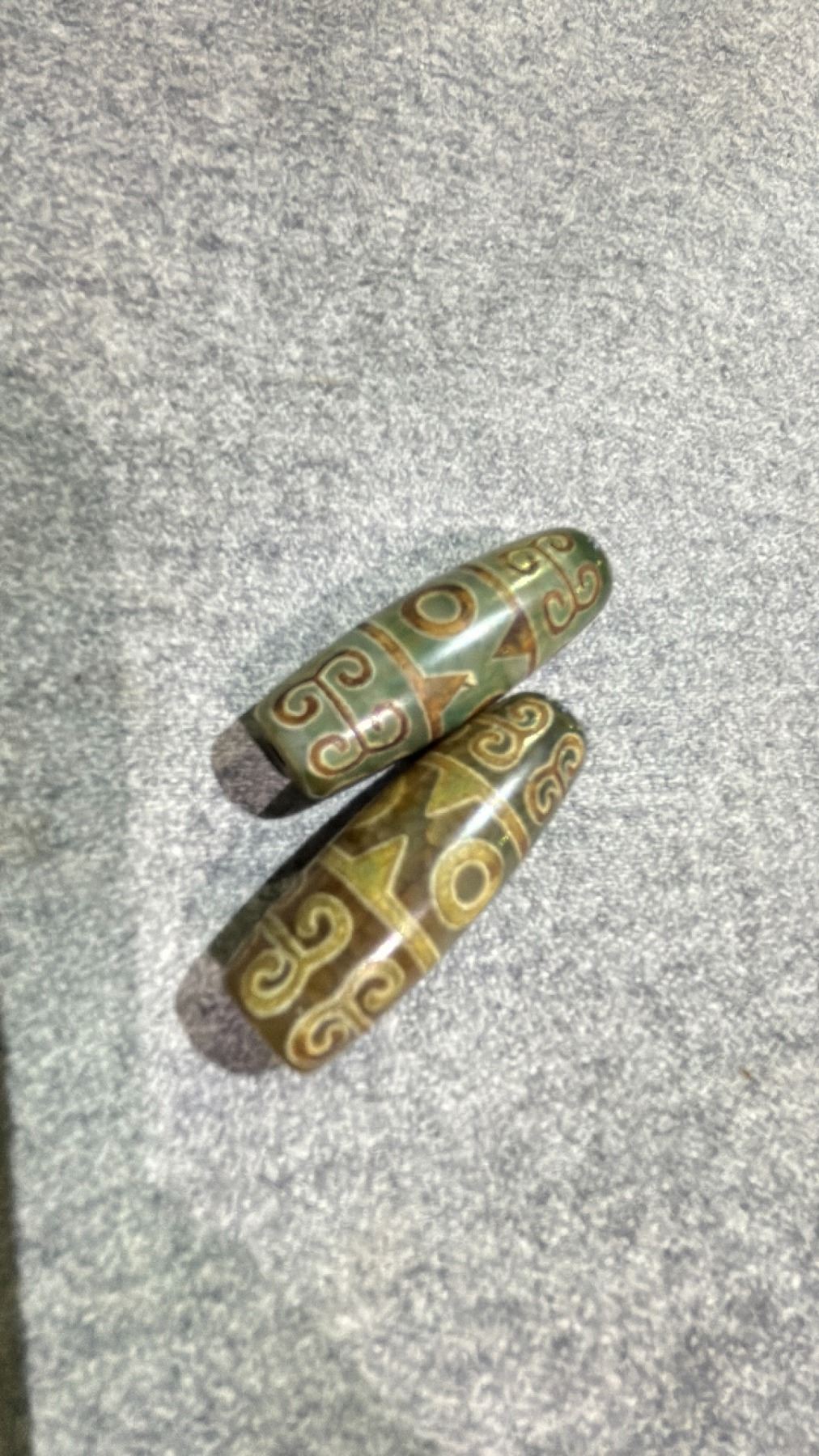 PAIR OF TIBETAN "HOLLOW SUN" DZI BEADS APPROX 1 3/4"