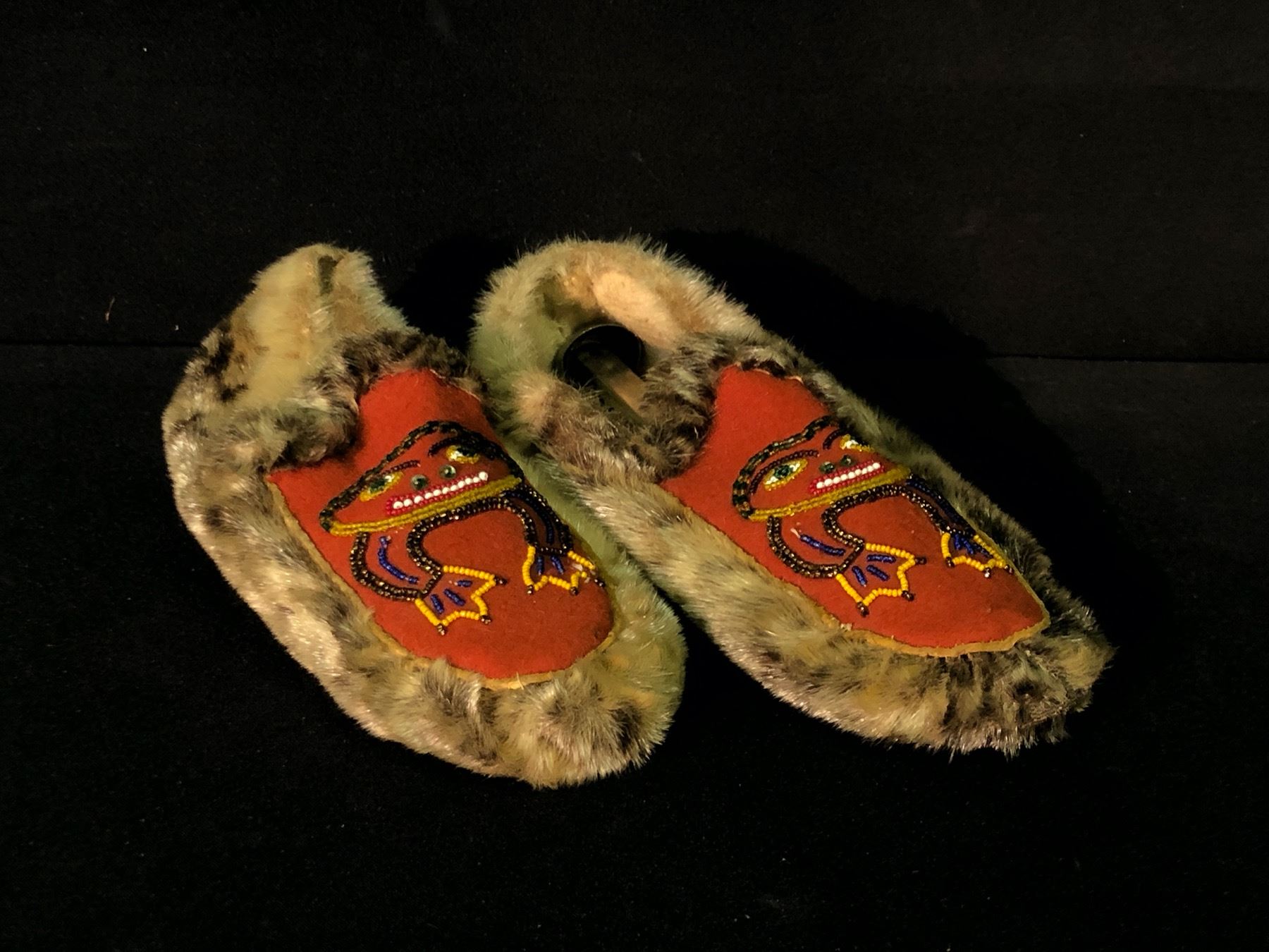 PAIR OF TLINGIT NATIVE BEADED SEAL SKIN MOCCASINS