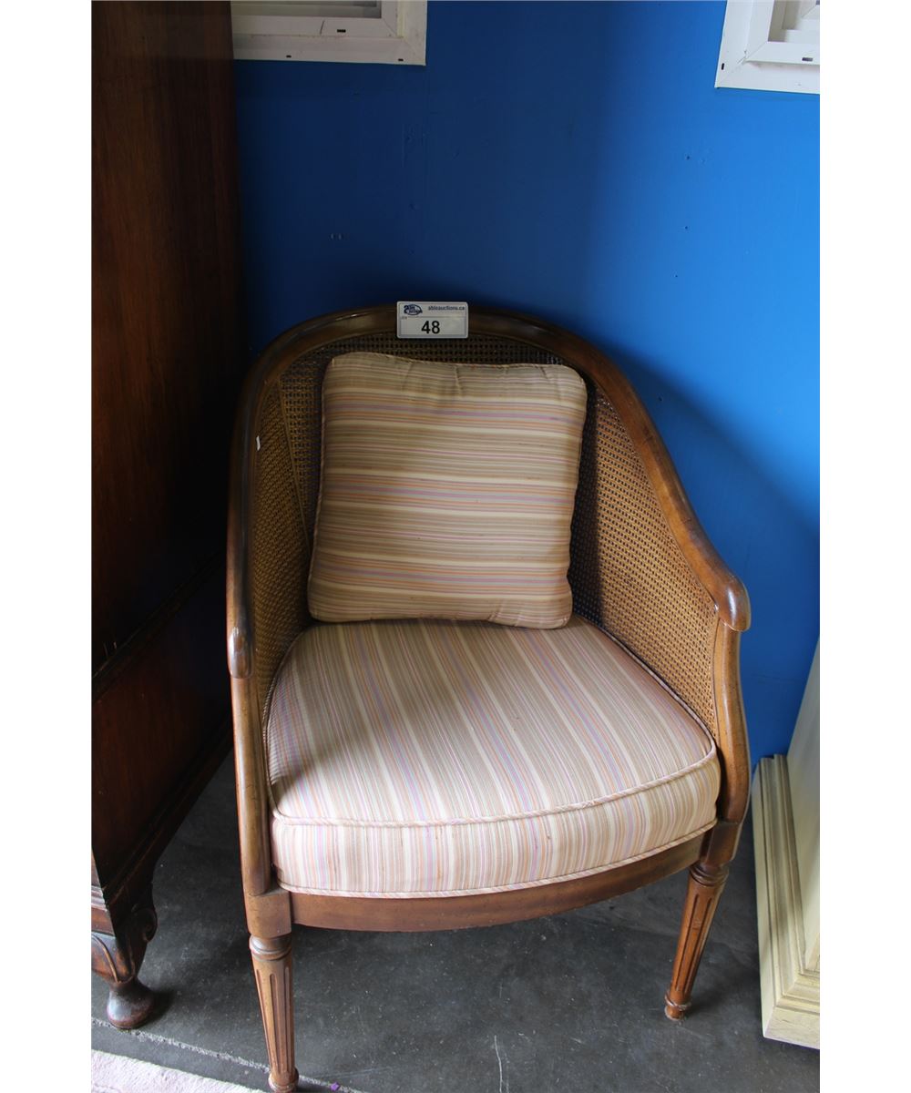 PAIR OF TRADITIONAL PEACH PIN STRIPED ACCENT CHAIRS
