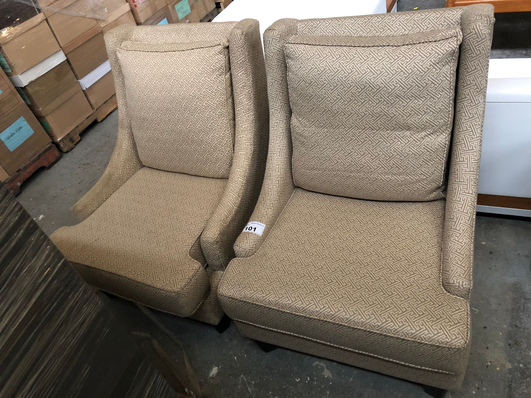 PAIR OF UPHOLSTERED HIGH BACK CHAIRS