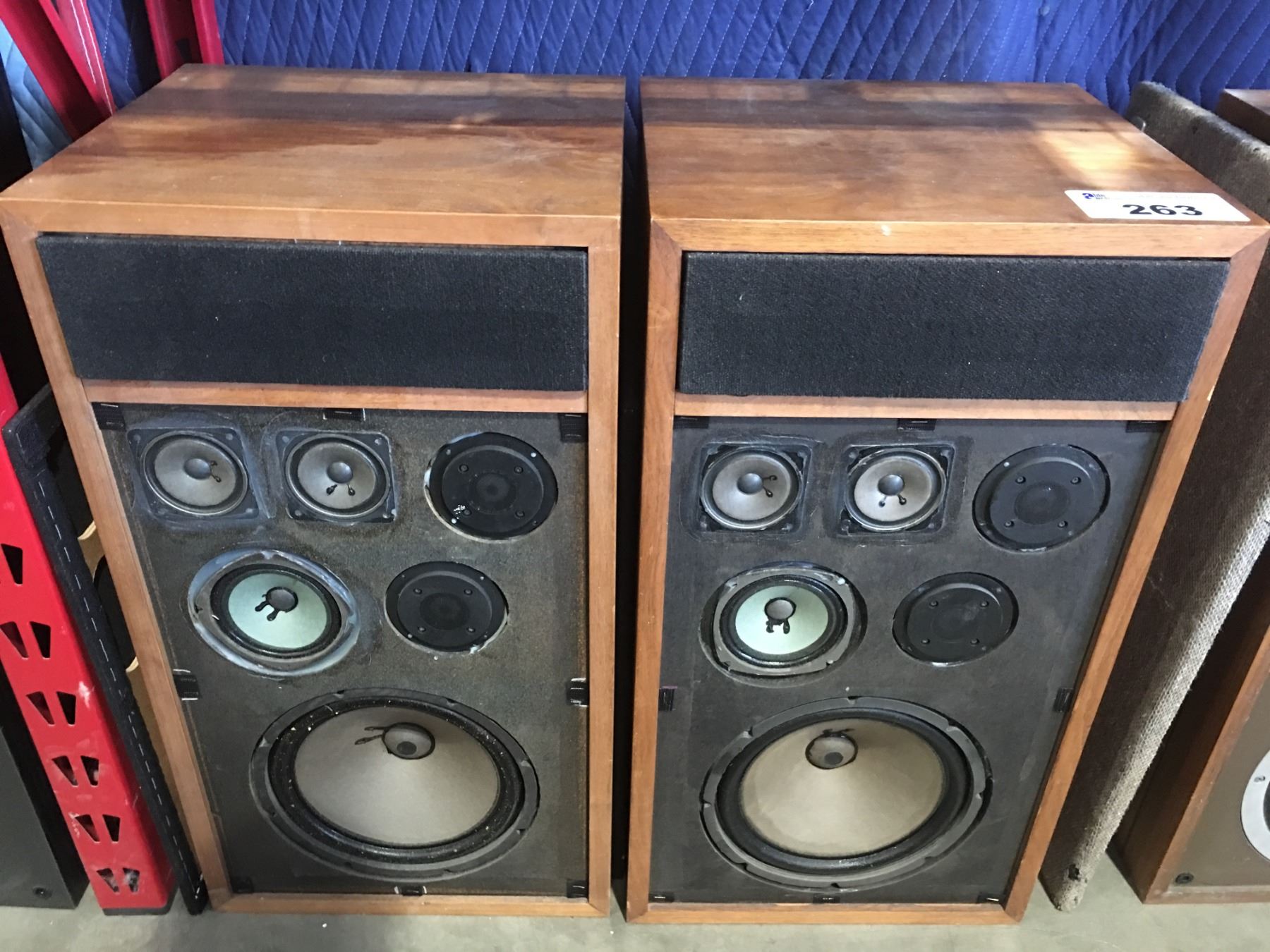 PAIR OF VINTAGE MAGNUM OPUS HOME AUDIO SPEAKERS WITH DUST COVERS