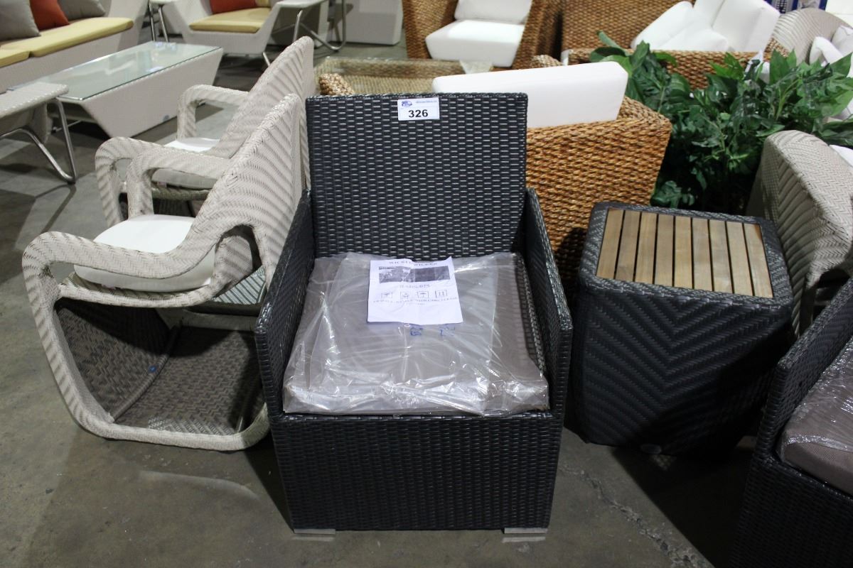 PAIR OF WICKED WICKER BLACK WOVEN & BEIGE OUTDOOR PATIO CHAIRS