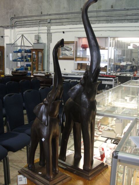 PAIR OF WOOD CARVED DECORATIVE ELEPHANTS