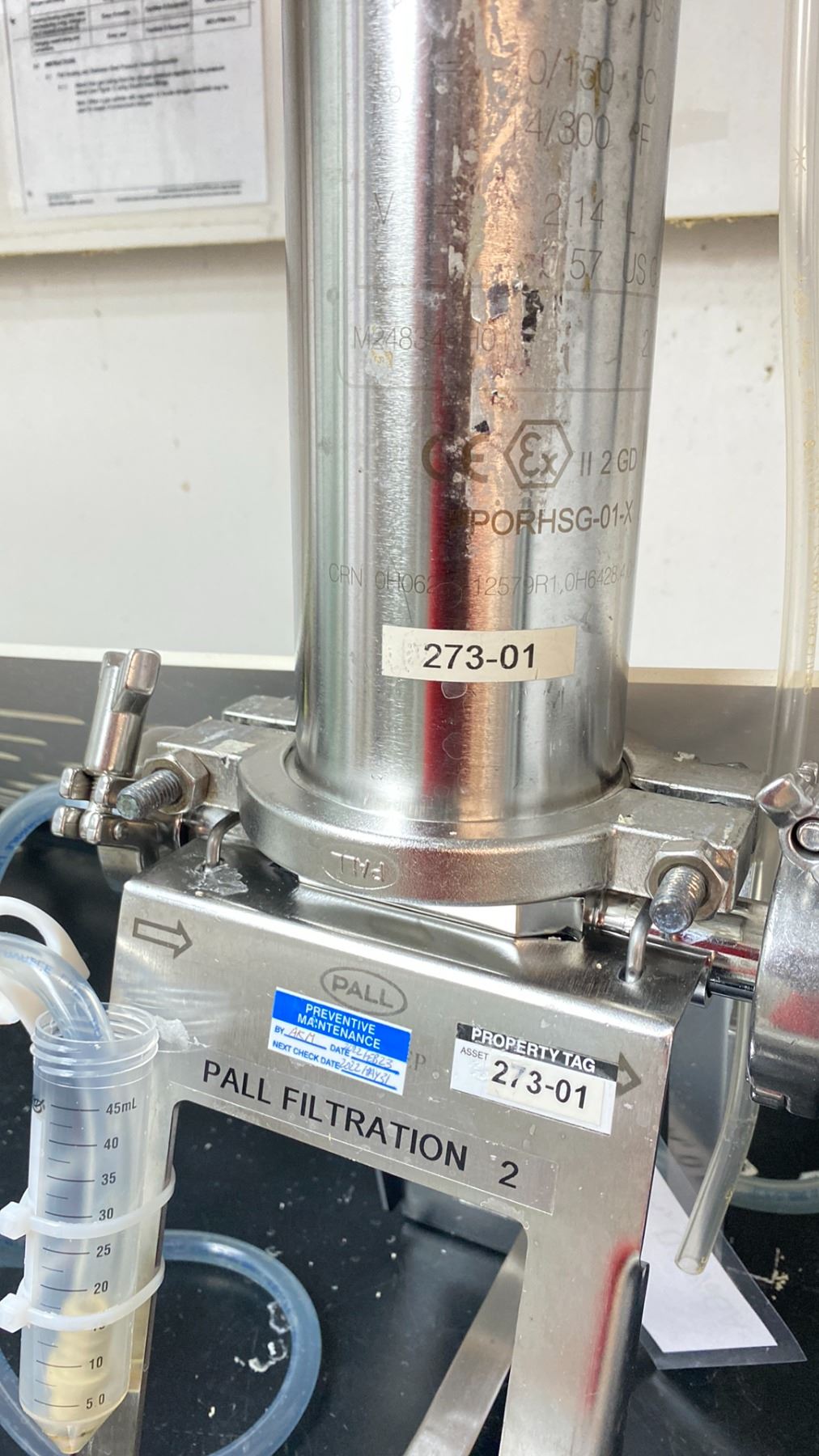 PALL FILTRATION SYSTEM WITH 60L ROLLING STAINLESS STEEL VESSEL TANK