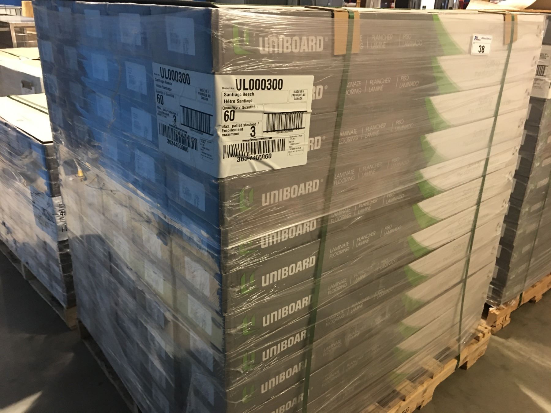 PALLET (60 BOXES) OF UNIBOARD 8" X 12MM LAMINATE FLOORING (SANTIAGO BEACH) 19.66 SQ FT PER BOX (1179.6 SQ FT PER PALLET) - D