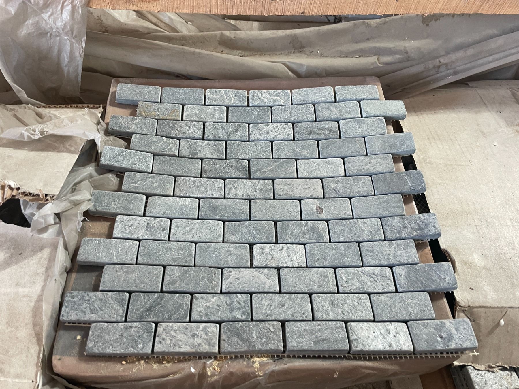 PALLET CRATE OF 1 X 2 PLATINUM 12 X 12 NATURAL STONE MOSAIC SHEET TILES