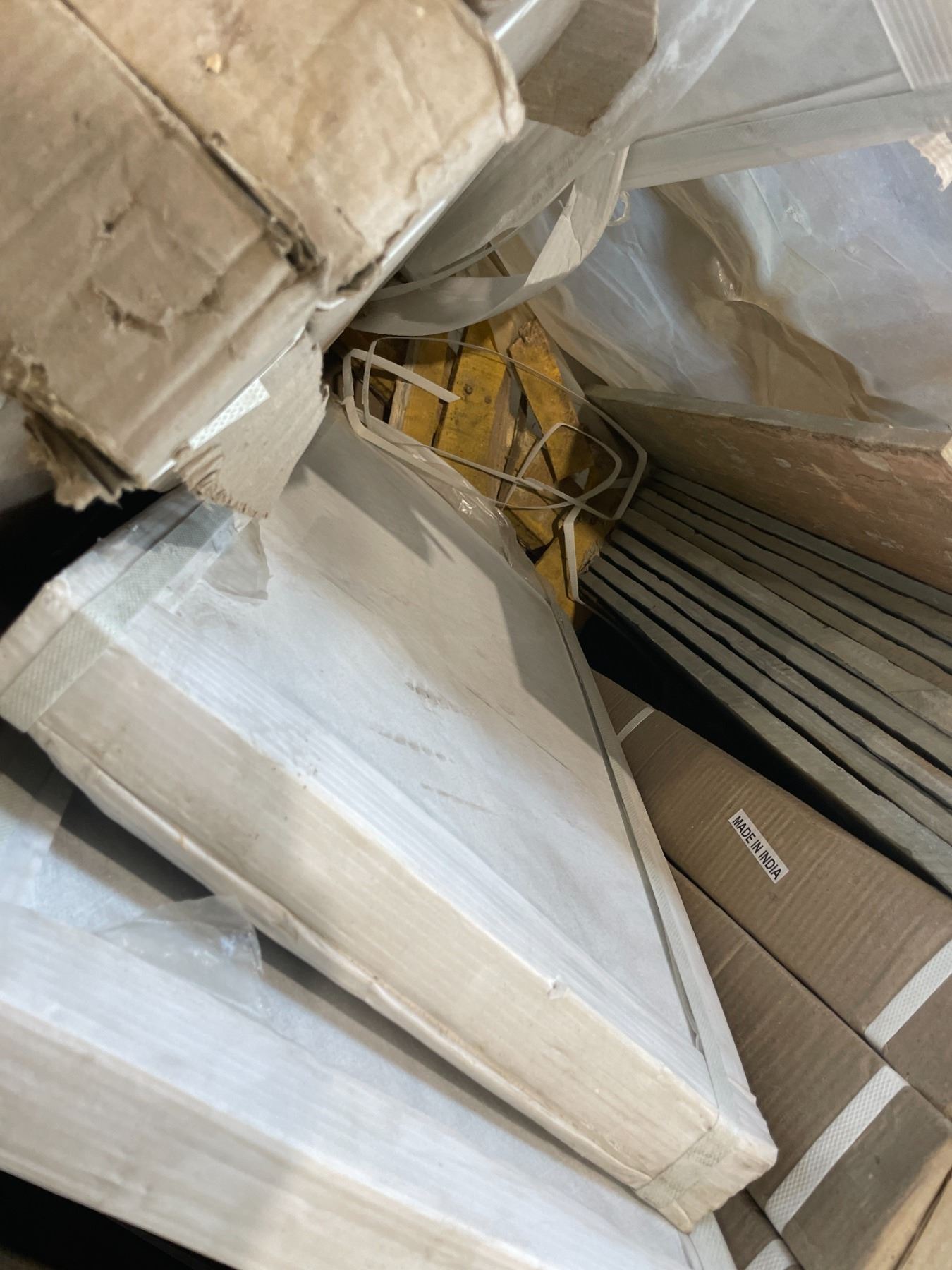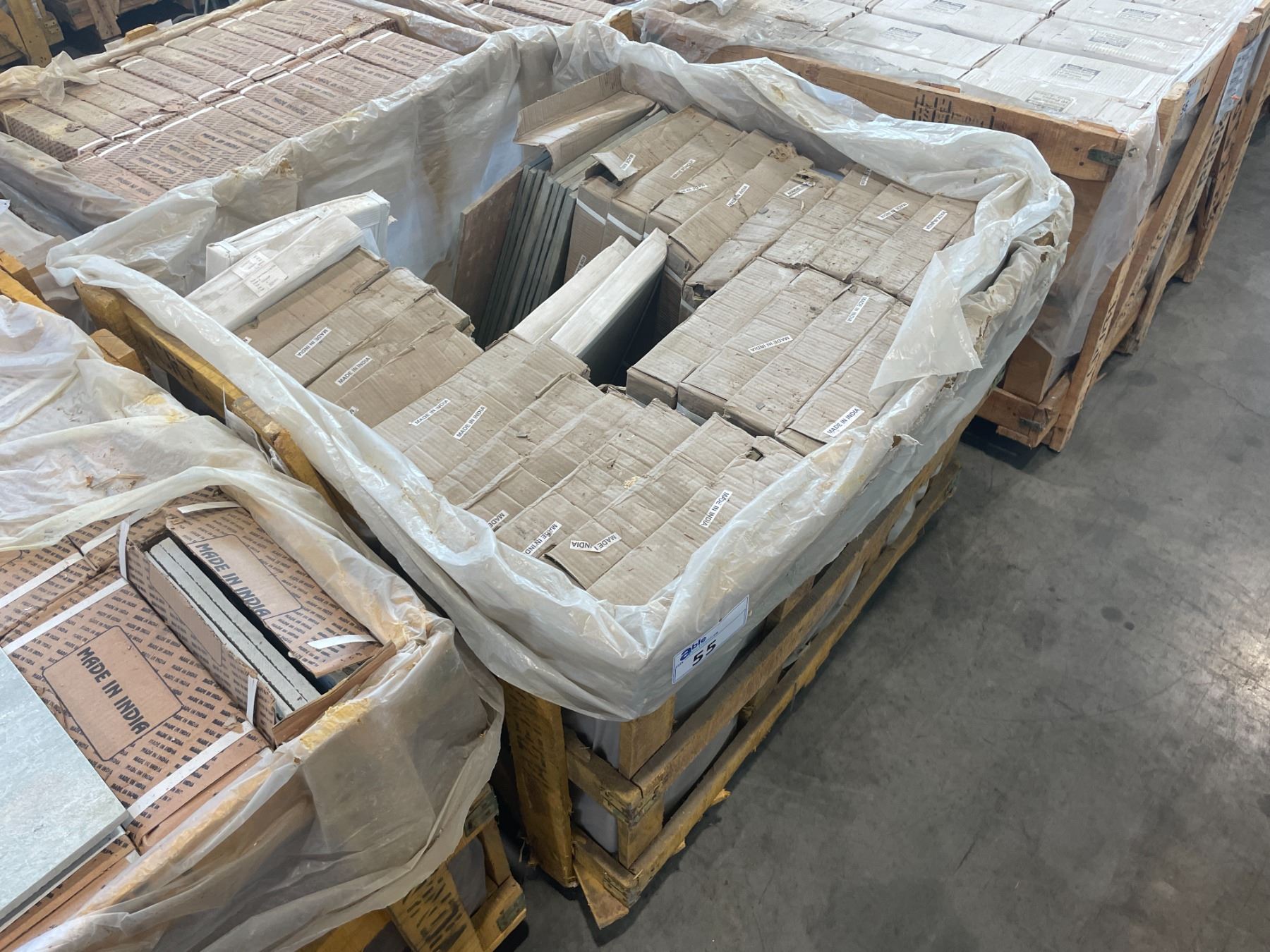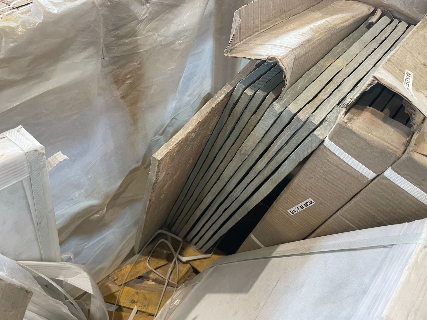 PALLET CRATE OF 25 PCS 12 X 24 IVORY TRAVERTINE NATURAL STONE TILES & 130 PCS OF 12 X 24 RUSTIC GREEN NATURAL STONE TILE