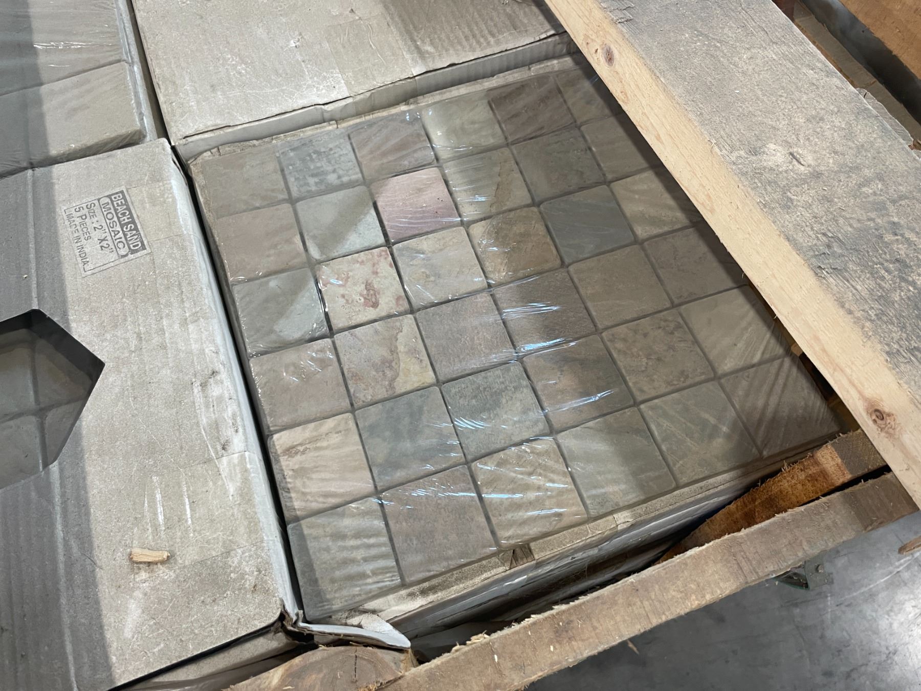 PALLET CRATE OF 420 PCS OF 2 X 2 BEACH SAND MOSAIC NATURAL STONE 12 X 12 SHEET TILES