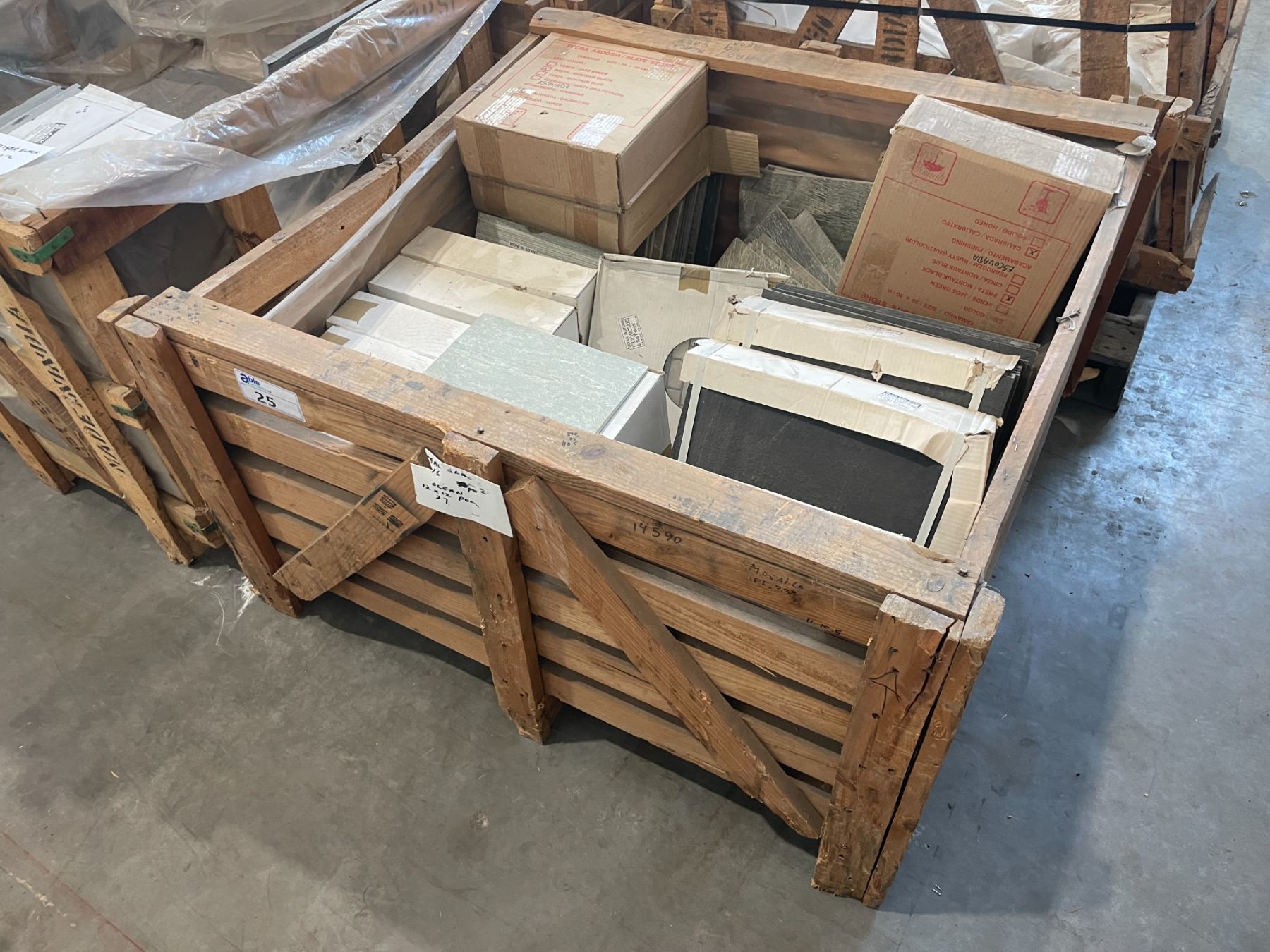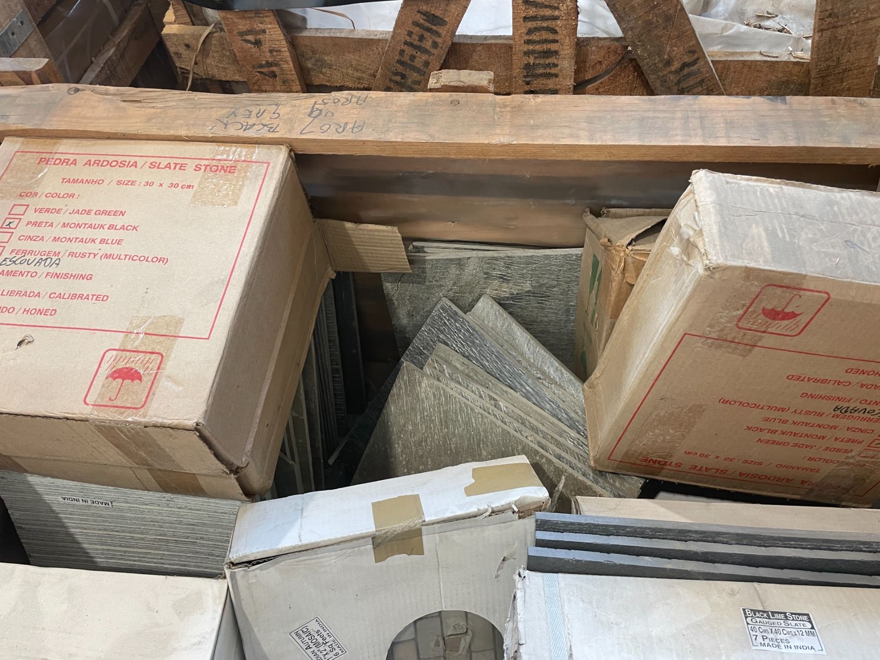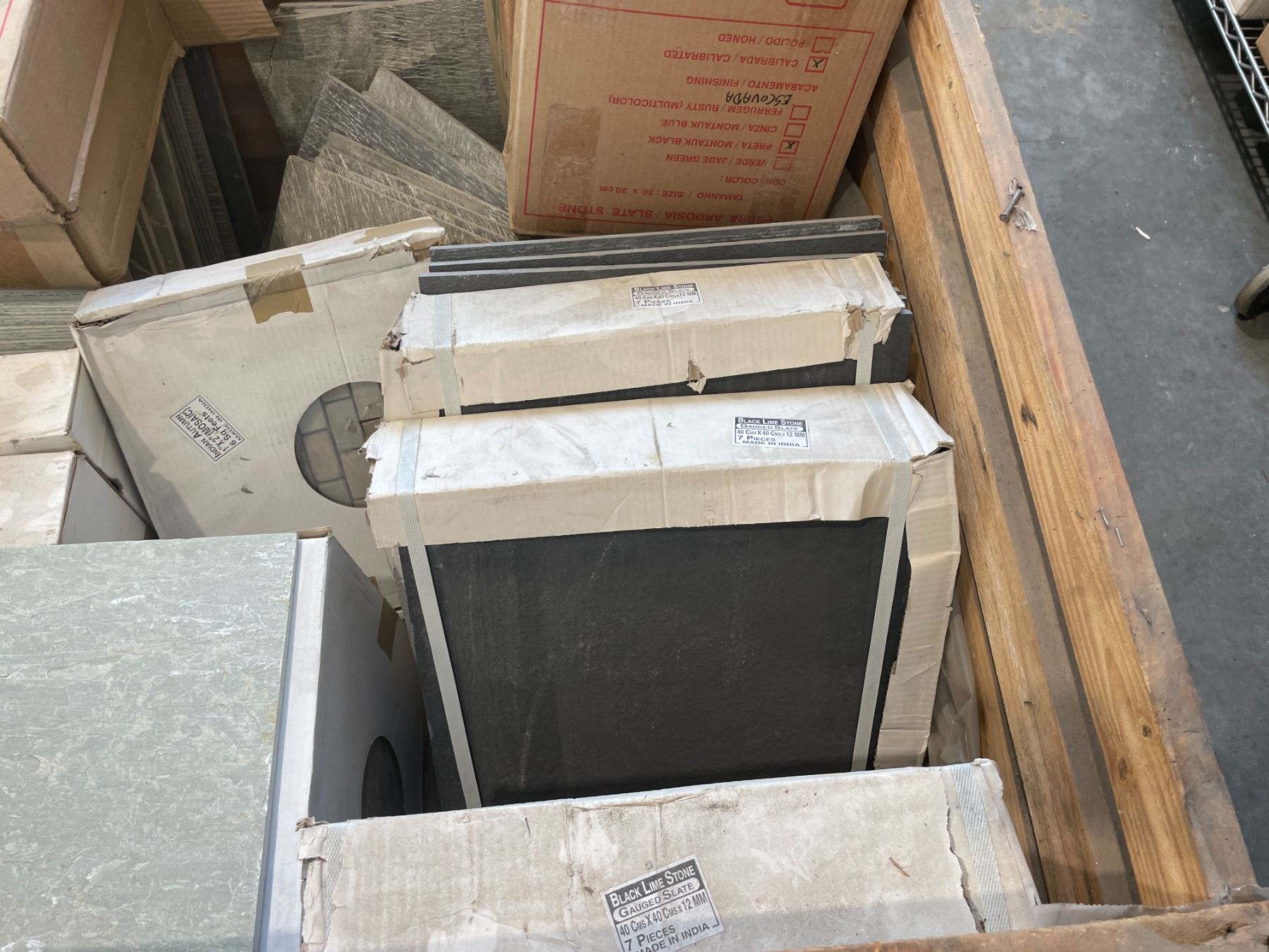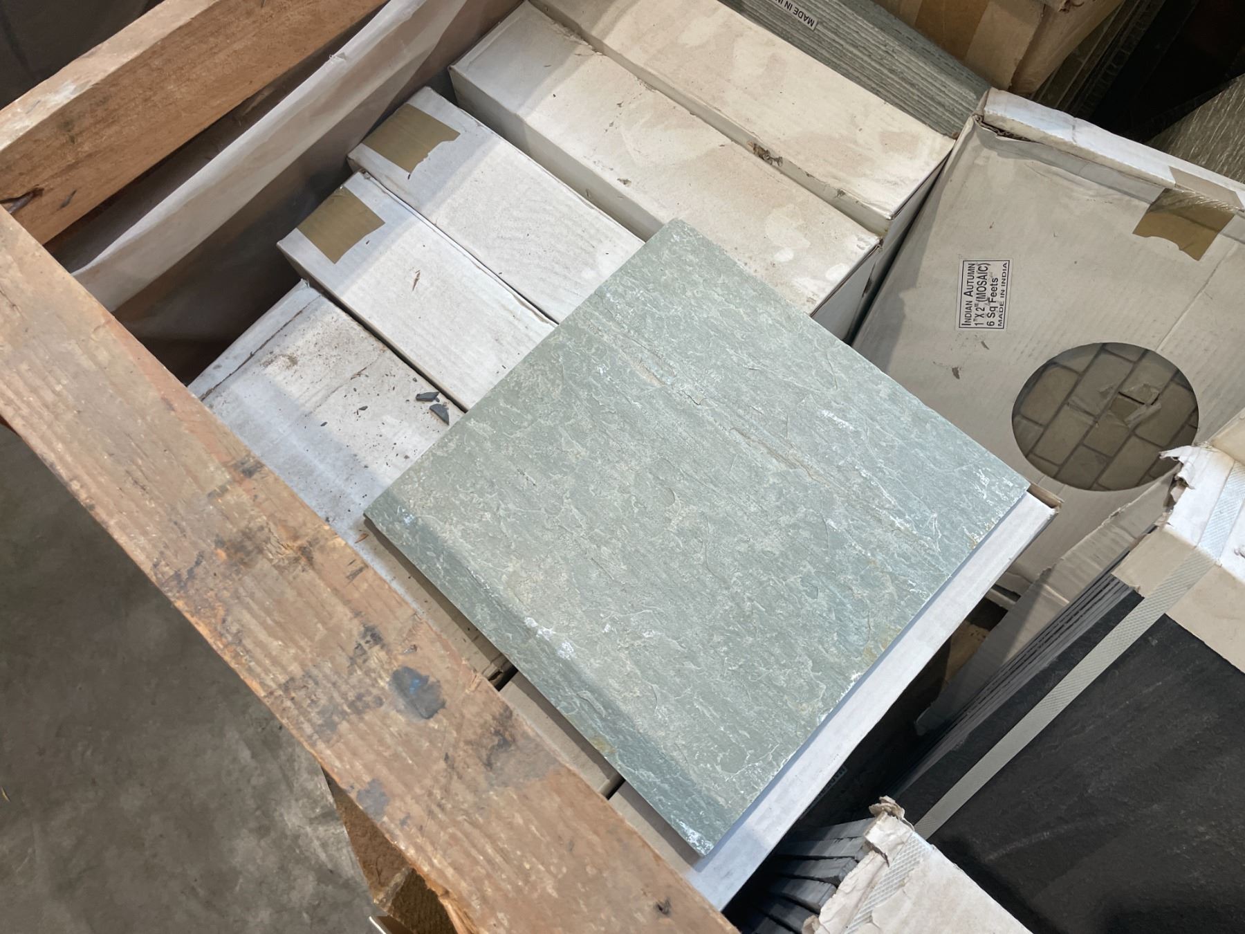 PALLET CRATE OF ASSORTED BLACK LIME & MONTUAK BLACK SLATE STONE & INDIAN AUTUMN MOSAICS