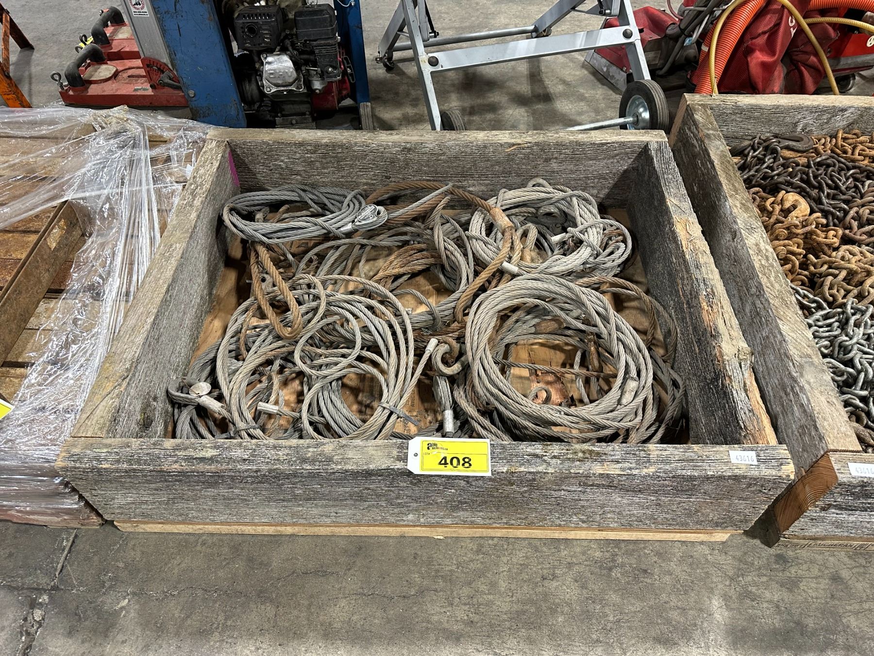 PALLET CRATE OF ASSORTED COMMERCIAL BRAIDED LIFTING CABLES