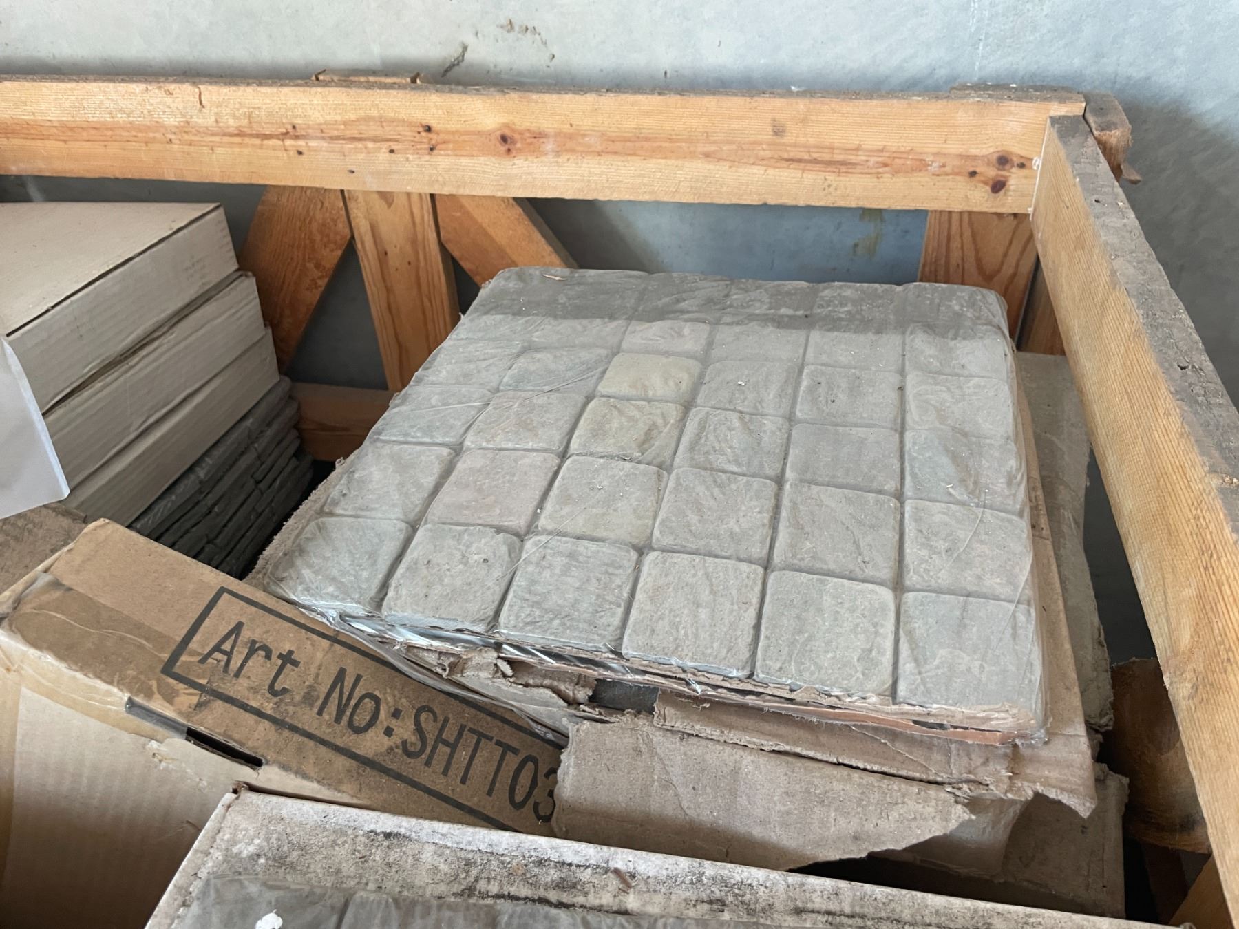 PALLET CRATE OF ASSORTED DESERT SAND 4 X 4 NATURAL STONE MOSAIC TILES & SAHARA 4 X 4 NATURAL STONE MOSAIC TILES